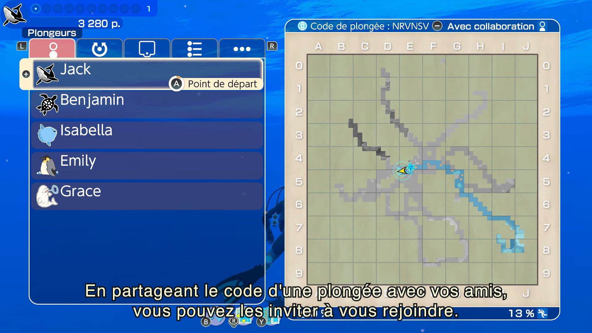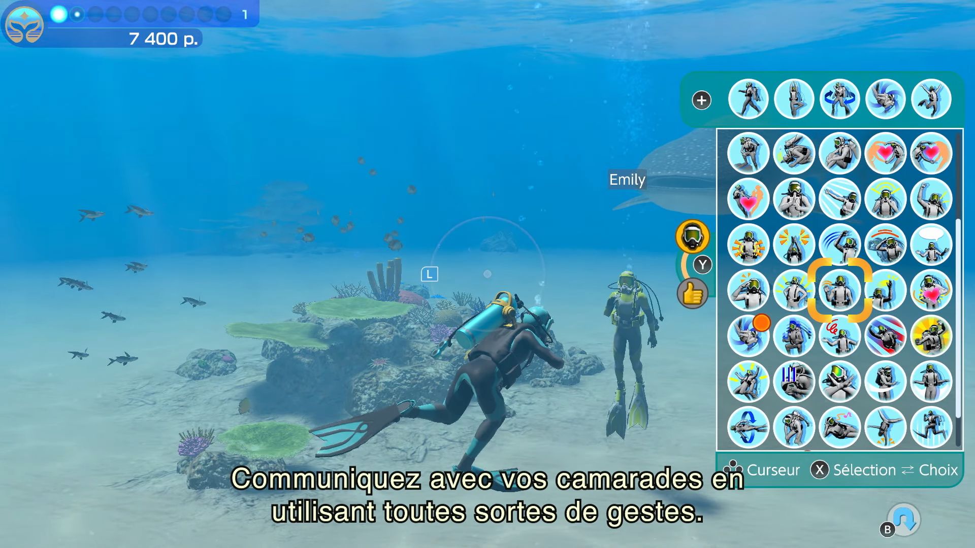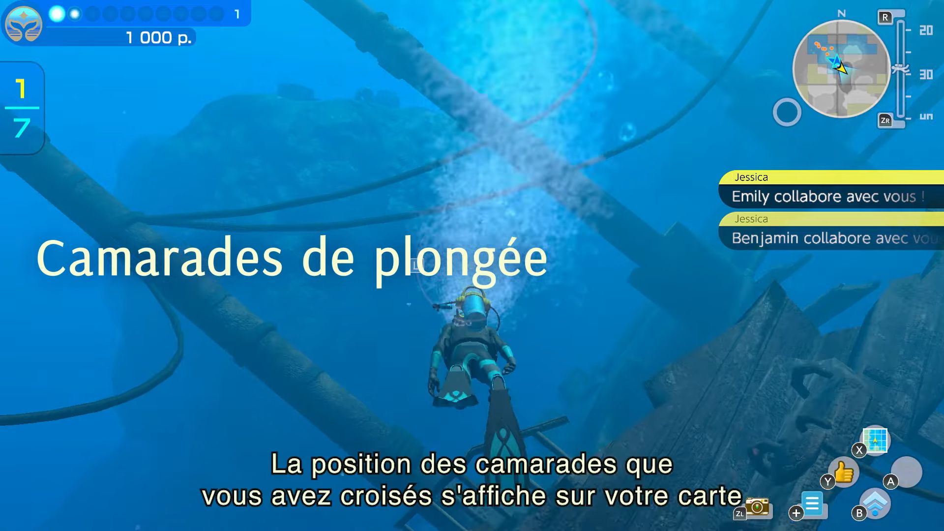 Les pages officielles du jeu (Europe / Japon / États-Unis) ont été également mises à jour, ce qui a permis de découvrir de nouvelles séquences de gameplay et des informations supplémentaires. Tout d’abord, rappelons que dans ce nouvel épisode, on pourra plonger dans la mer Voilée, une région inexplorée dont les profondeurs changent à chaque exploration. Il y aura plus de 500 formes de vie marines, dont certaines qui étaient considérées comme éteintes ou qui appartenaient à des légendes. Ce nouveau jeu aura la particularité d’être jouable jusqu’à 30 en ligne. En effet, il sera possible de partir en virée aux côtés de 29 autres joueurs afin de découvrir les mystères se cachant dans les profondeurs à plusieurs, en ayant un abonnement au service Nintendo Switch Online. Pour communiquer, on pourra utiliser toutes sortes de gestes. Par ailleurs, un essai gratuit de 7 jours pour le service Nintendo Switch Online est inclus avec le jeu, ce qui permettra donc d’essayer toutes les fonctionnalités en ligne sans frais supplémentaires. Les textes seront en français, anglais, allemand, espagnol, néerlandais et italien. Voici des séquences de gameplay :