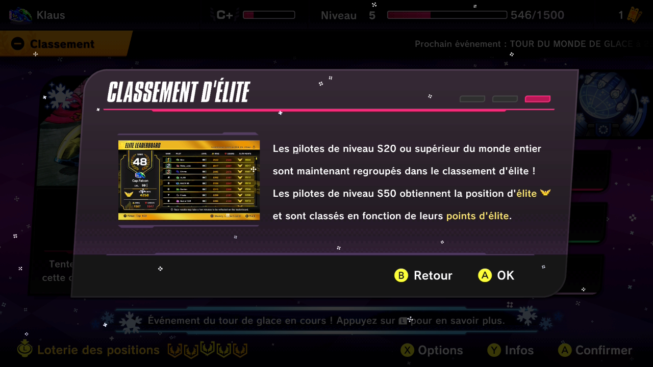 Une fois le classement d’élite réinitialisé, vous devez effectuer au moins une course pour faire partie du classement d’élite.