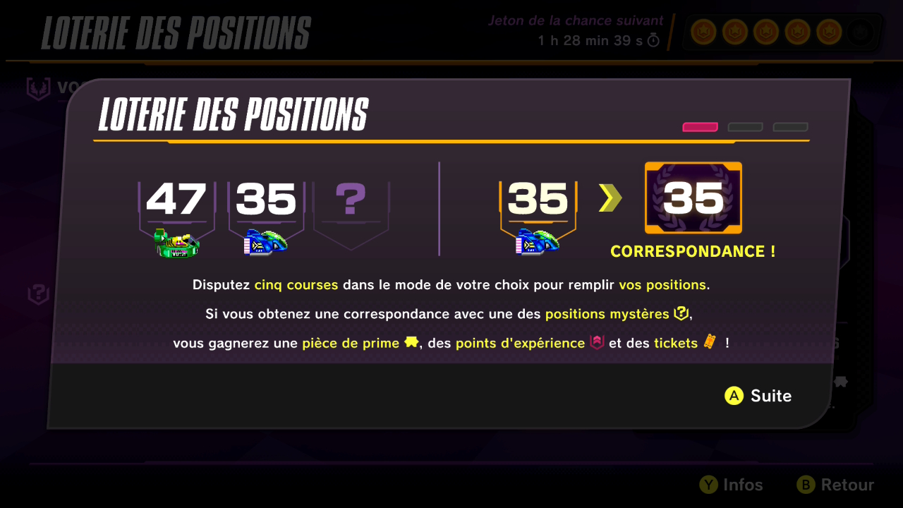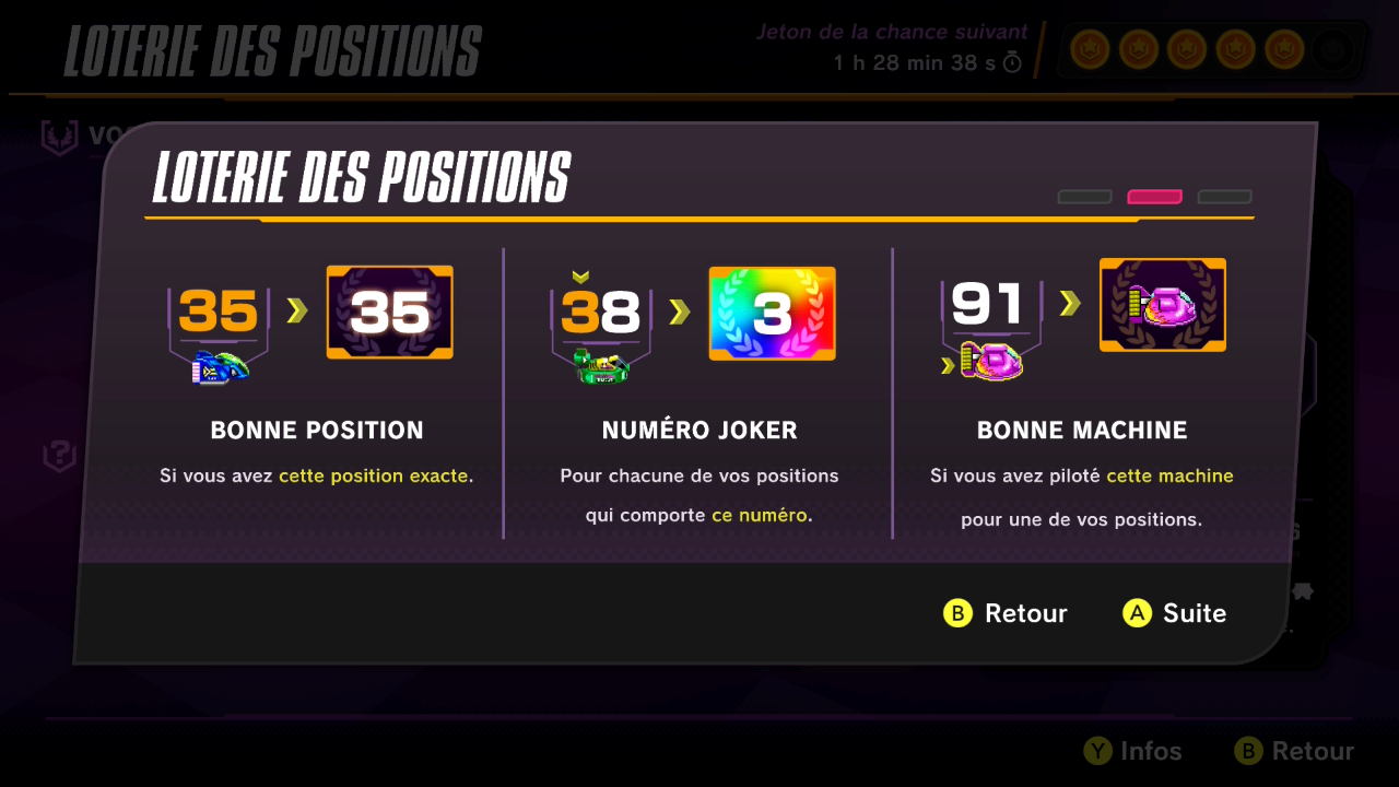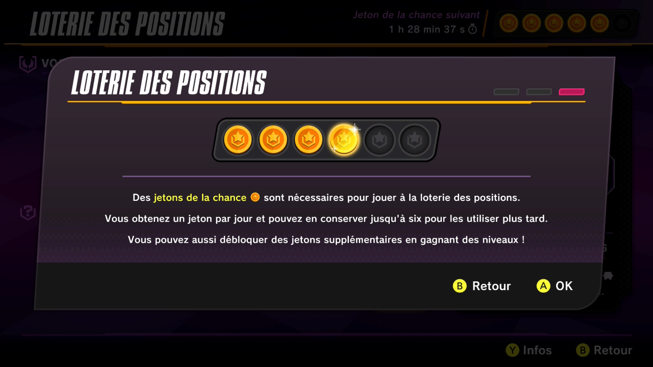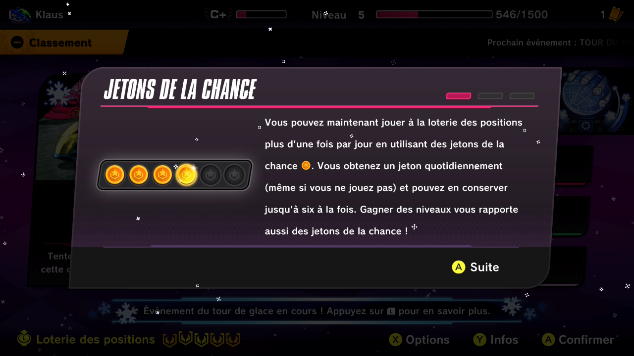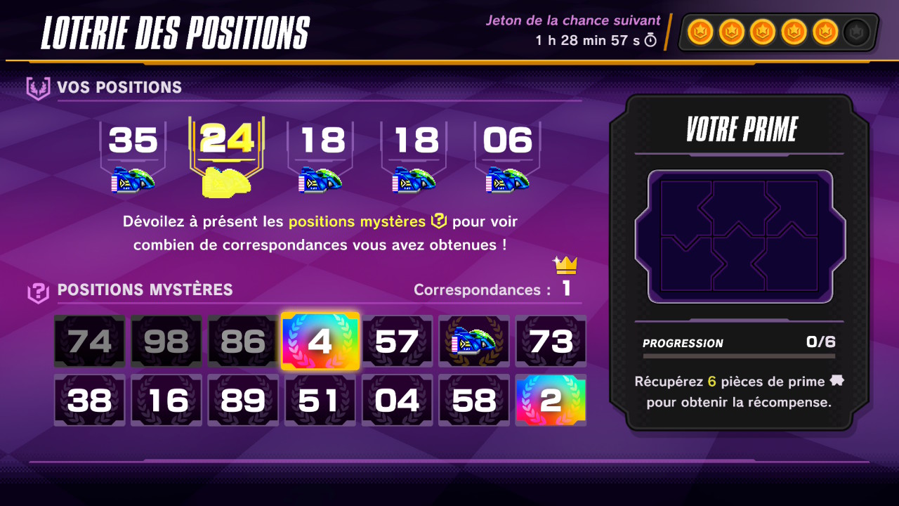 Les jetons de la chance ont été ajoutés. Chaque jeton de la chance vous permet de jouer une fois par jour à la loterie des positions.