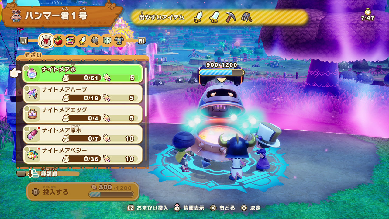 Autre nouveauté : les alchimiborgs. Insérer les matériaux et les équipements dont on n’a pas besoin dans ces machines permettra d’obtenir de nouveaux objets. Des alchimiborgs rares permettent aussi d’obtenir des objets puissants.