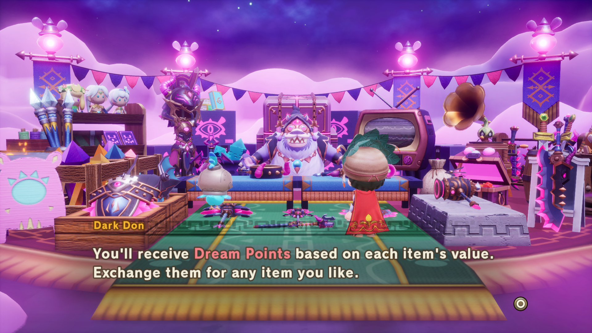 Dans ce mode, on peut aussi échanger des matériaux contre des objets oniriques. Les matériaux peuvent être récupérés durant l’aventure à Hypnagogia et on peut ensuite les échanger contre des objets précieux qui ne sont pas disponibles ailleurs. Par ailleurs, de nouveaux équipements, montures et objets d’art pourront être obtenus. À noter que les objets obtenus de cette façon pourront être également utilisés dans le jeu de base.