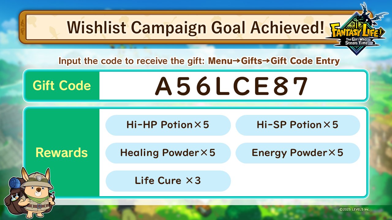 Enfin, Level-5 a partagé deux codes qu’il est possible d’entrer directement dans le jeu afin d’obtenir des objets utiles. Pour savoir comment les utiliser exactement, les étapes sont détaillées sur le site officiel.