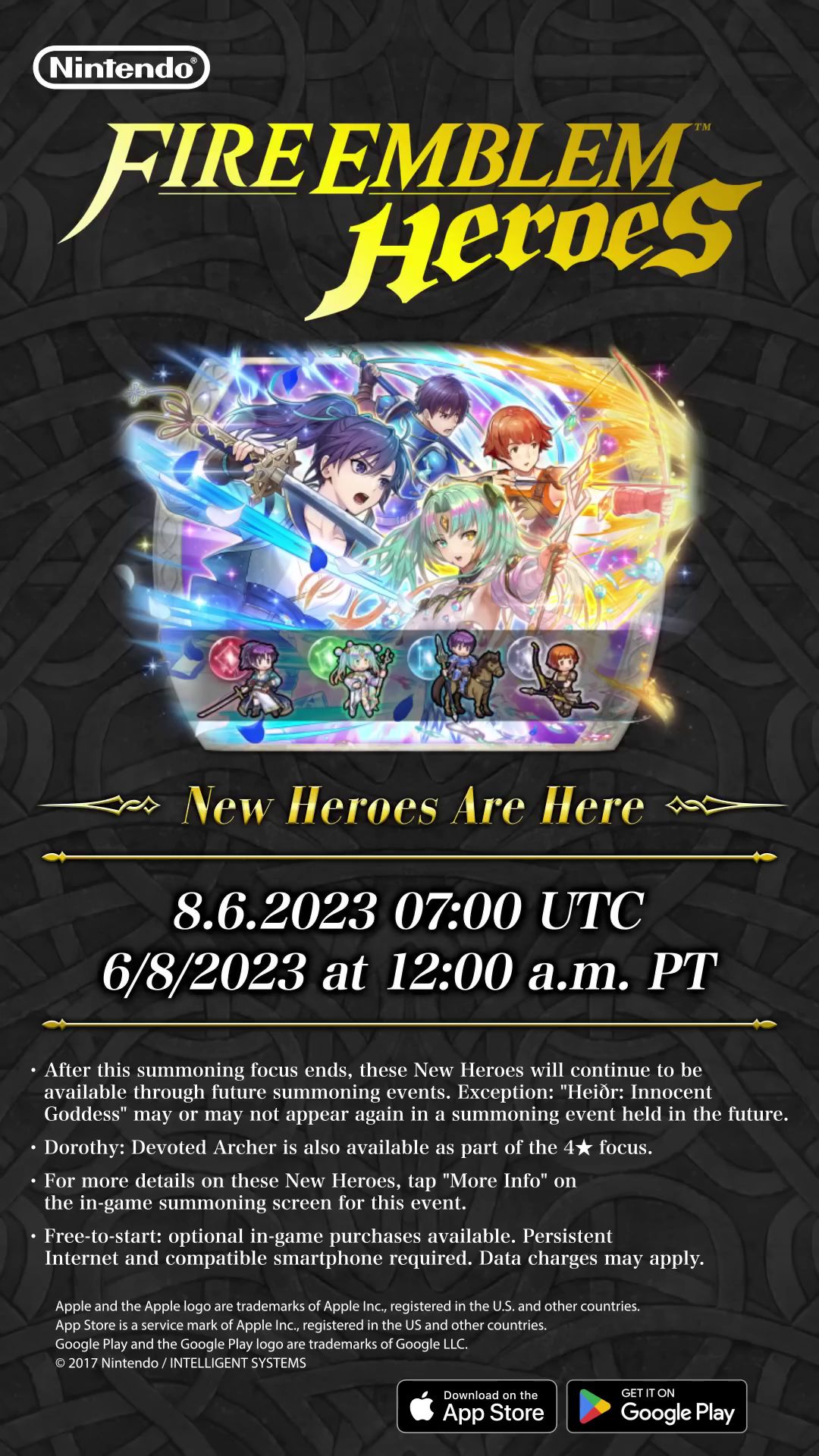 La 2e partie du livre VII a commencé dans Fire Emblem Heroes, avec en plus des événements dédiés, une nouvelle mise à jour, un nouveau focus et une grande bataille inédite. Le nouveau focus, disponible jusqu’au 30 juin à 8:59, met en scène trois héros de The Binding Blade, à savoir Fir éminente (fantassin, épée), Noah (unité montée, lance) et Dorothy (fantassin, arc, également disponible en version 4 étoiles) ainsi que l’héroïne mythique Heiðr (fantassin, tome vert, effet mythique : astra) du livre VII. La version éminente de Fir rejoint donc Fjorm, Laegjarn, Joshua, Idunn, Mareeta, Ishtar, Florina, Celica, Hilda, Eir, Tiki et Elincia. Des quêtes dédiées au début de la 2e partie du livre VII permettent de recruter 2 fois Saul de The Binding Blade (fantassin, bâton) en version 5 étoiles. Les nouveautés de la nouvelle mise à jour, qui passe le jeu à la version 7.6.0, est détaillée à cette adresse. Les nouveaux héros apparaissent aussi dans l’événement « Liens d’amitié : le chemin vers la force », disponible jusqu’au 22 juin à 8:59. Concernant la grande bataille, elle est consacrée à Murdock de The Binding Blade, et est disponible jusqu’au 16 juin à 8:59. Toutes les informations concernant les événements de la 2e partie du livre VII se trouvent ici.