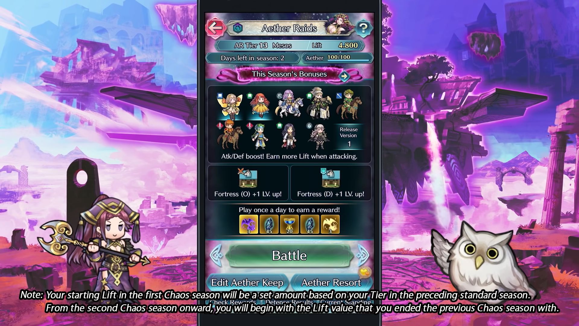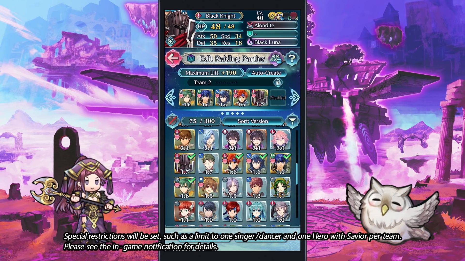 Pour finir, la mascotte Feh a présenté la nouvelle mise à jour, qui est arrivée ce 7 juin et qui passe le jeu à la version 6.6.0. Pour résumer, en plus de signer le début de la seconde moitié du livre VI, elle apporte des changements au mode Raid céleste. Une toute nouvelle saison a été ajoutée : le chaos, dont la première commencera le 21 juin à 9:00. Pendant cette saison, il faudra modifier la technique de création d’équipes et élaborer des stratégies que l’on n’utilise pas dans les saisons ordinaires. Durant cette saison, les effets légendaires et mythiques sont désactivés. De plus, avec cette mise à jour, tous les héros de la version 1 seront des alliés de l’Appel aux armes lors de la première saison du chaos débutant le 21 juin. Avec eux, on aura donc suffisamment de choix pour créer des équipes. Avec cette première saison du chaos, on pourra choisir parmi ceux de la version 1. Pour la deuxième, il y aura ceux de la version 2, et ainsi de suite. Pour savoir de quelle version vient un héros, il suffit de choisir « Version » lorsqu’on les trie.