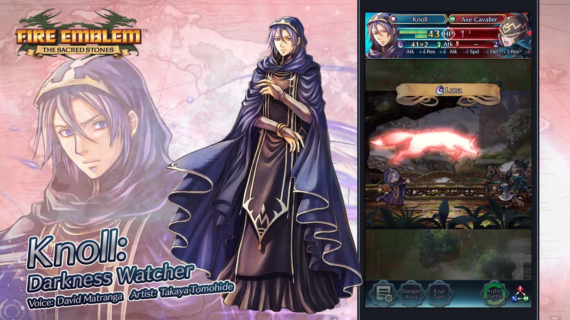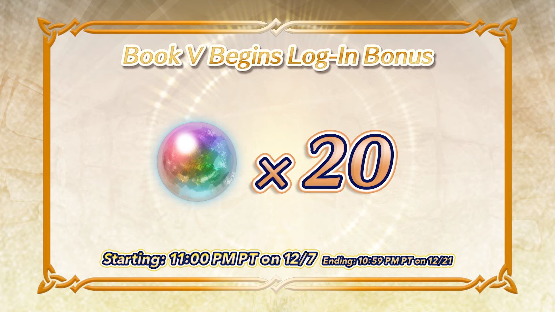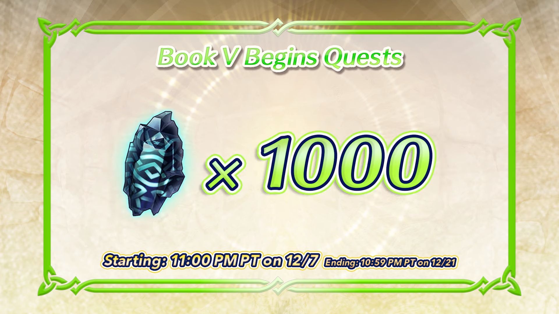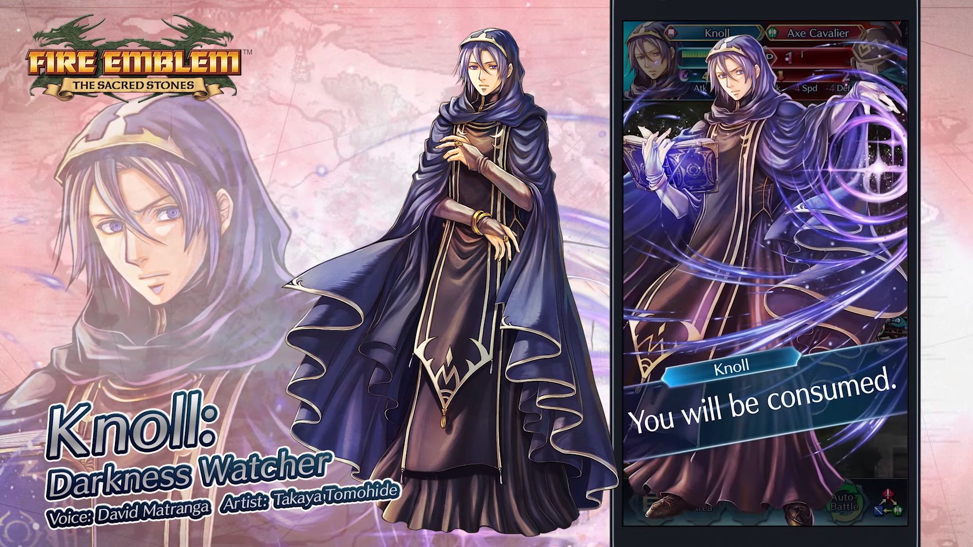 Les quêtes du début du livre V permettent notamment d’obtenir Knoll, Garde de l’ombre (fantassin, tome rouge) de Fire Emblem : The Sacred Stones (doublé par David Matranga en anglais / Ryuichi Kijima en japonais, illustré par Takaya Tomohide) en version 4 étoiles. Sa fiche sur le guide officiel se trouve ici.