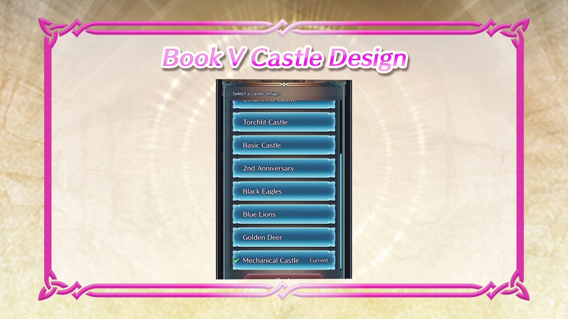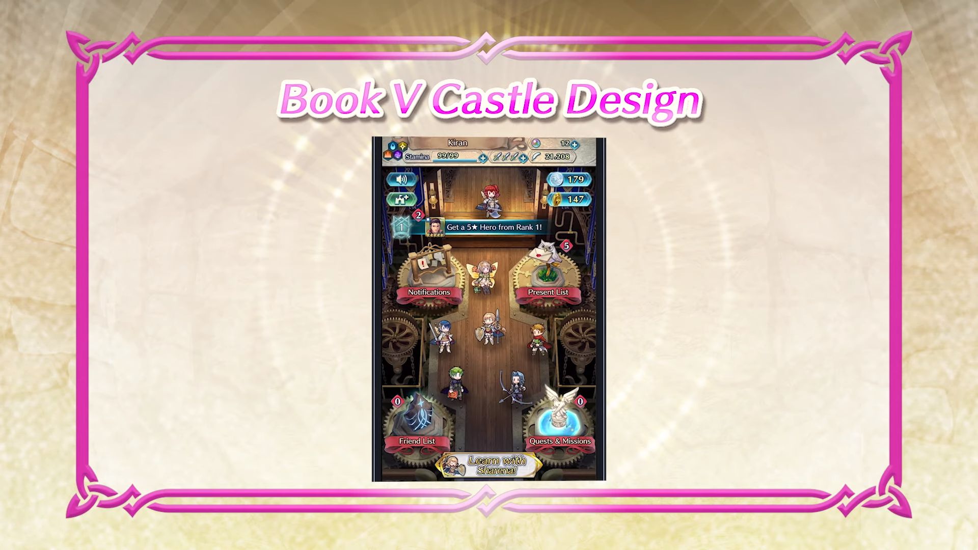Nintendo et Intelligent Systems proposent aussi dès maintenant plusieurs événements et bonus pour célébrer l’arrivée du livre V. Il y a bien sûr un bonus de connexion qui permet d’obtenir des orbes jusqu’à dix fois, des quêtes spéciales permettant d’obtenir des pierres d’éther, un nouveau style de château et de nouvelles structures ajoutées au centre d’éther.