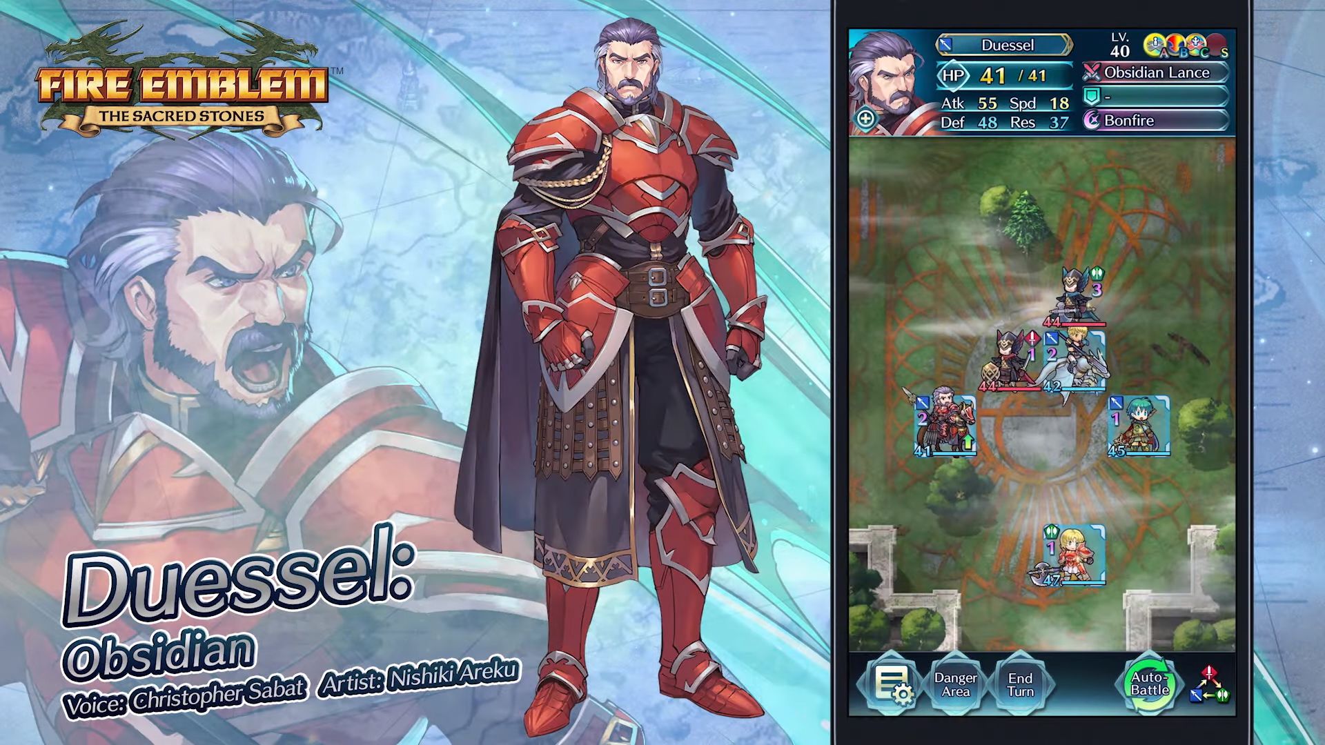 Le nouveau focus disponible dès maintenant est dédié non seulement à Reginn, mais aussi à trois héros issus de The Sacred Stones. Il est disponible jusqu’au 25 décembre à 7:59. Les héros de The Sacred Stones sont Selena (unité montée, tome bleu), Duessel (unité montée, lance) et Natasha (fantassin, bâton). Cette dernière peut aussi être invoquée en version 4*. Les héros apparaissent aussi dans le nouvel événement Liens d’amitié « vision d’avenir », accessible jusqu’au 22 décembre à 7:59. De plus, une grande bataille contre Caellach (fantassin, hache) sera disponible à partir du 9 décembre à 8:00 jusqu’au 19 décembre à 7:59.