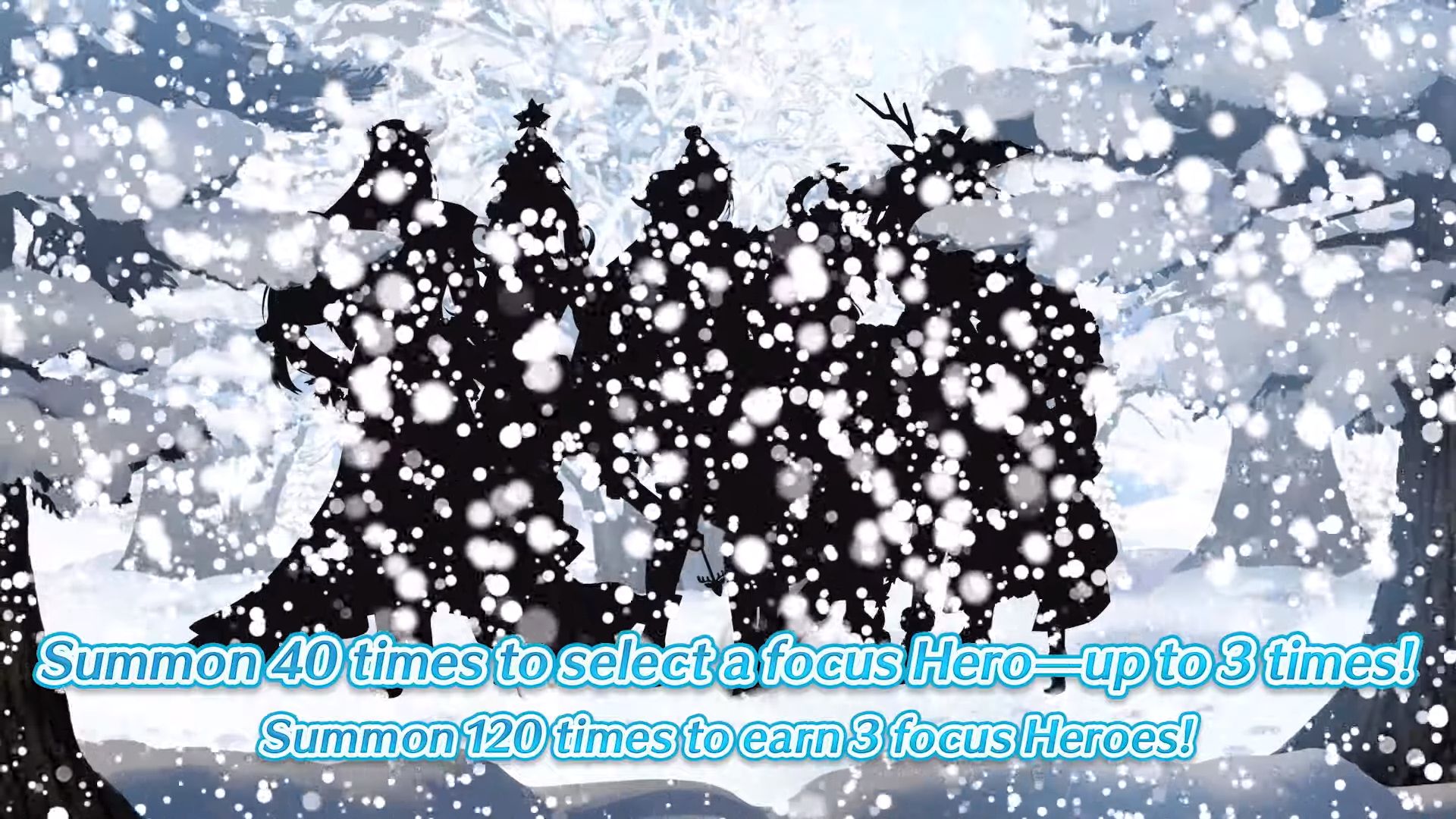 Pour finir, Nintendo et Intelligent Systems ont teasé les héros spéciaux du focus du festival de l’hiver 2020-2021 avec des silhouettes. Le focus sera disponible à la moitié du mois de décembre. De plus, il sera possible de choisir un héros 5 étoiles à invoquer gratuitement après avoir invoqué 40 fois dans le focus, jusqu’à 3 fois. On pourra alors obtenir les trois héros du focus avec au moins 120 invocations.