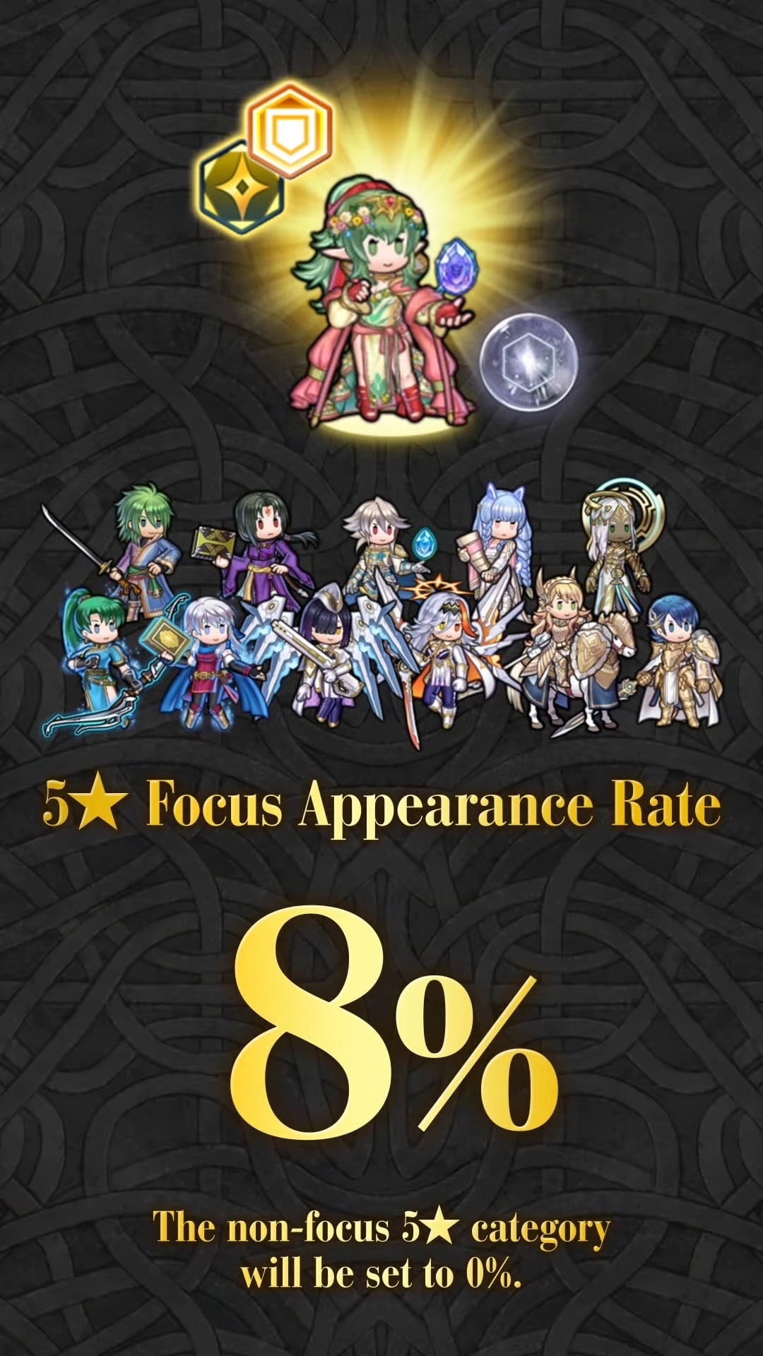 Comme les focus d’Emblèmes et de héros légendaires et mythiques précédents, cet événement permettra aussi de recruter des héros spéciaux 5* qui étaient disponibles autrefois dans de précédents focus. De plus, le taux d’apparition initial des héros 5* est de 8 %. Cependant, il faut savoir comme d’habitude que le taux d’apparition des héros 5* normaux est de 0 %. À noter également qu’en invoquant Tiki, Voix éternelle, on recevra une bénédiction de la lumière. Les héros ayant reçu cette bénédiction obtiendront deux fois plus de PA en combattant et bénéficieront d’un boost s’ils combattent aux côtés de Tiki, Voix éternelle pendant la saison de la lumière.