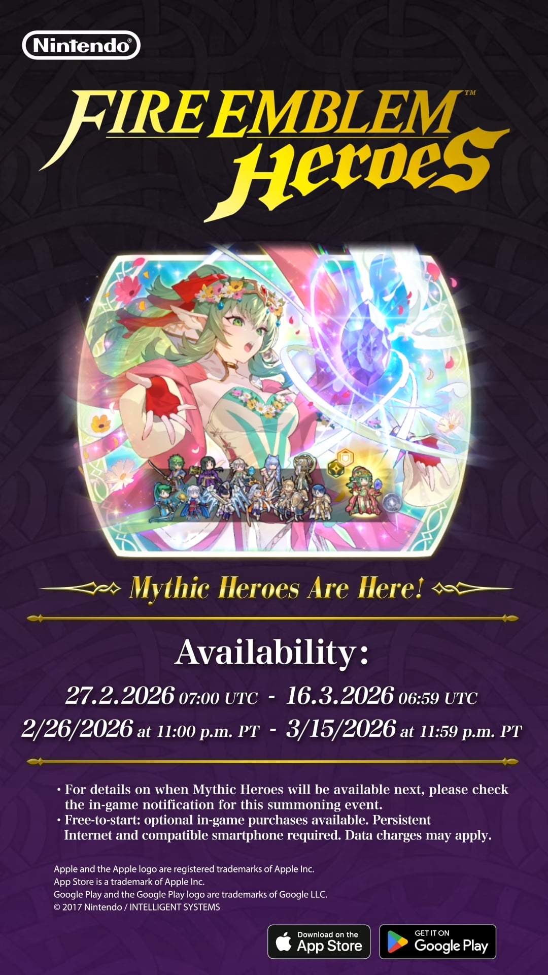 Nintendo et IntelligentSystems ont lancé un nouvel événement d’invocation de héros légendaires et mythiques pour Fire Emblem Heroes, ajoutant une version mythique de Tiki (unité cuirassée, souffle gris, effet mythique : lumière) de Fire Emblem : Awakening. Le focus où il est possible de l’invoquer pour la première fois est disponible jusqu’au 16 mars à 07:59. Il est bien sûr accompagné de sa bataille mythique.