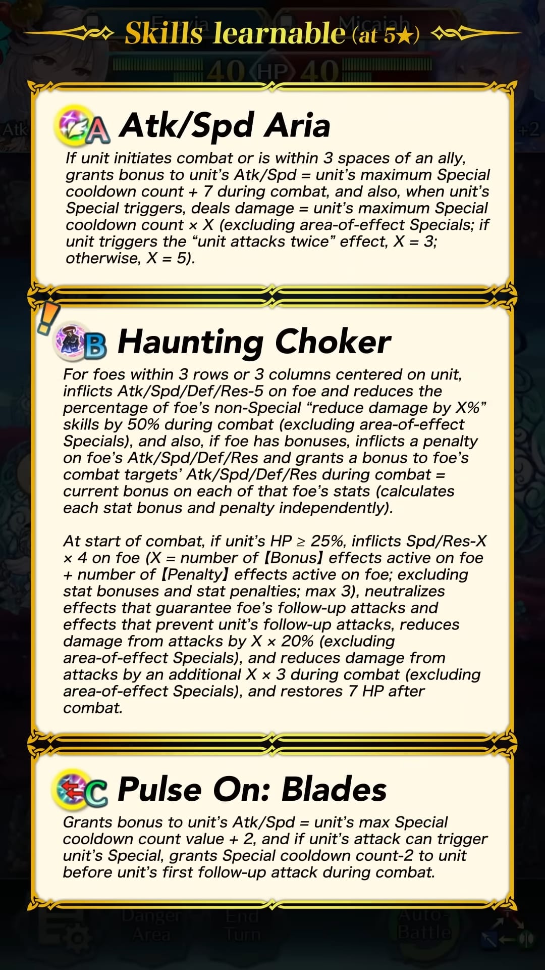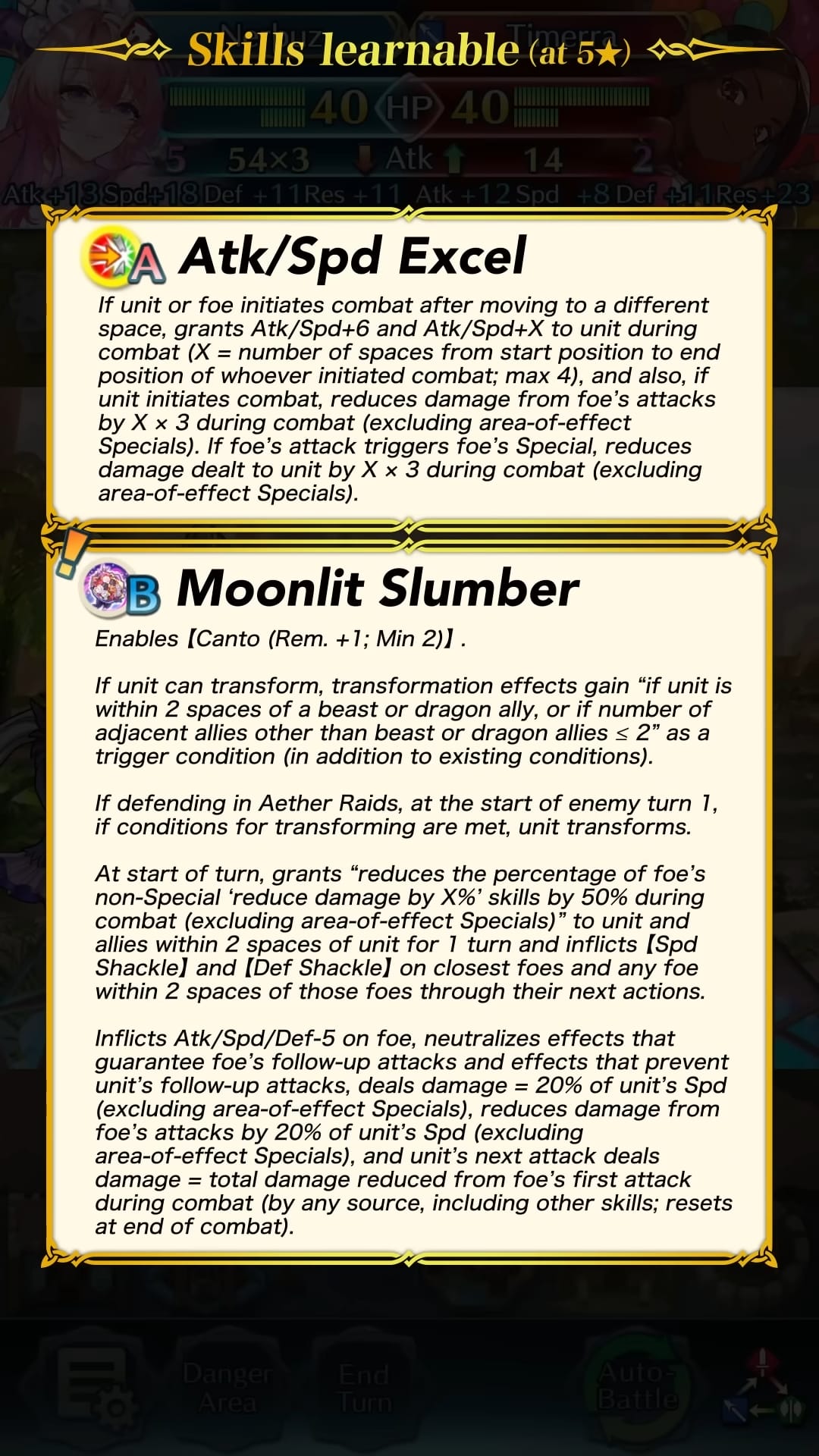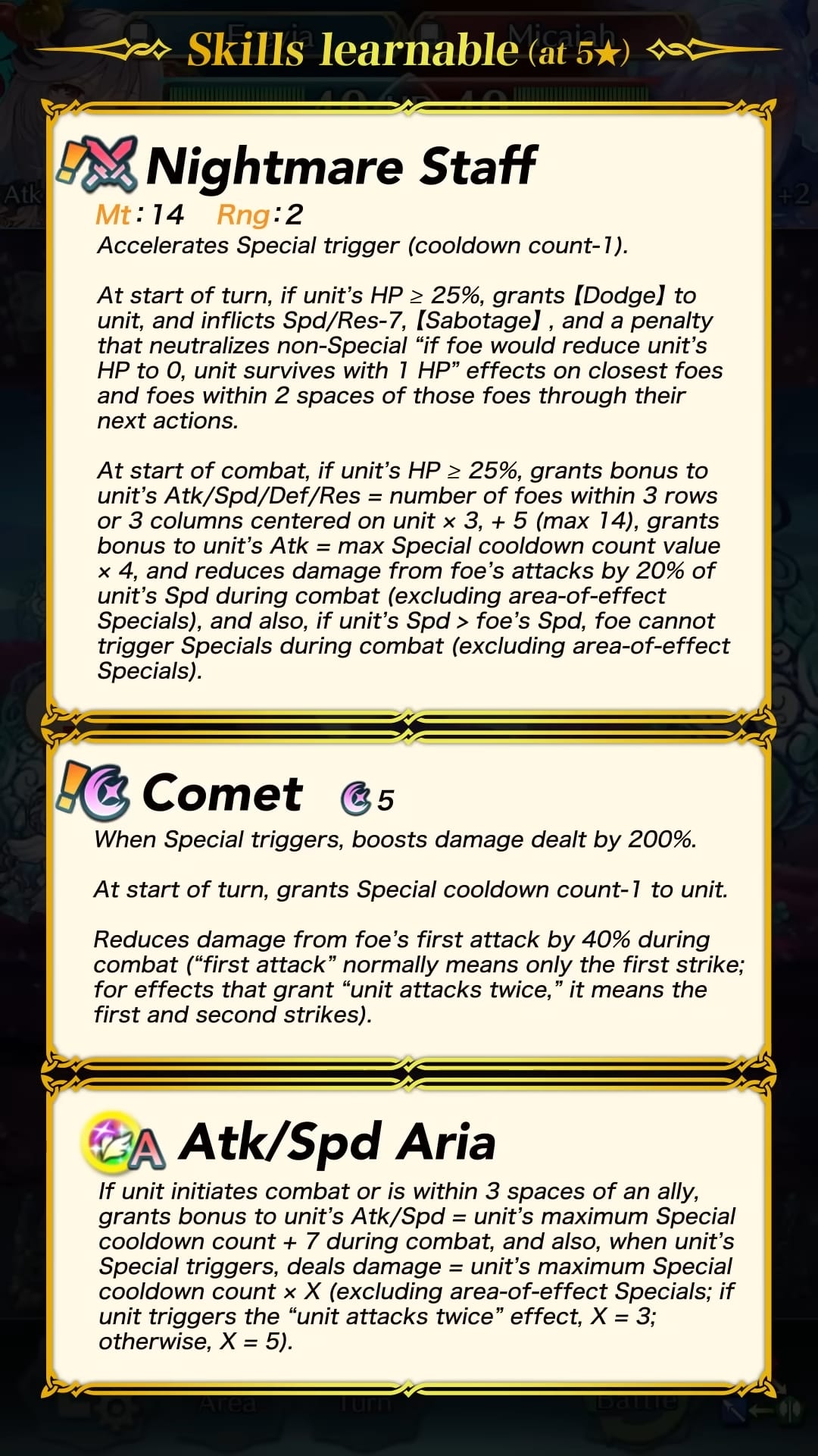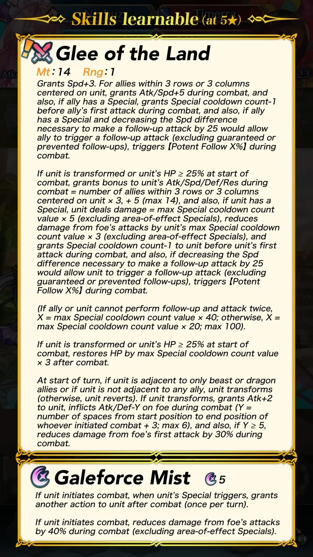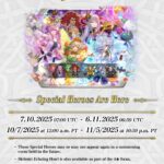Comme d’habitude, les héros spéciaux du focus ont droit à un type d’arme différent par rapport à leur version d’origine en plus d’une tenue unique et des aptitudes inédites disponibles au rang 5 étoiles. Un nouveau scénario annexe permet de gagner des orbes avec les trois niveaux de difficulté : Normal, Difficile et Expert. On peut donc gagner 9 orbes au total. De plus, des quêtes spéciales mettant en scène les héros sont aussi de la partie et permettent d’obtenir 3 orbes supplémentaires. Il sera possible d’invoquer l’héroïne 5* de notre choix après avoir réalisé 40 invocations. Cependant, cette possibilité est disponible uniquement pour les personnes possédant un abonnement au passe Feh.