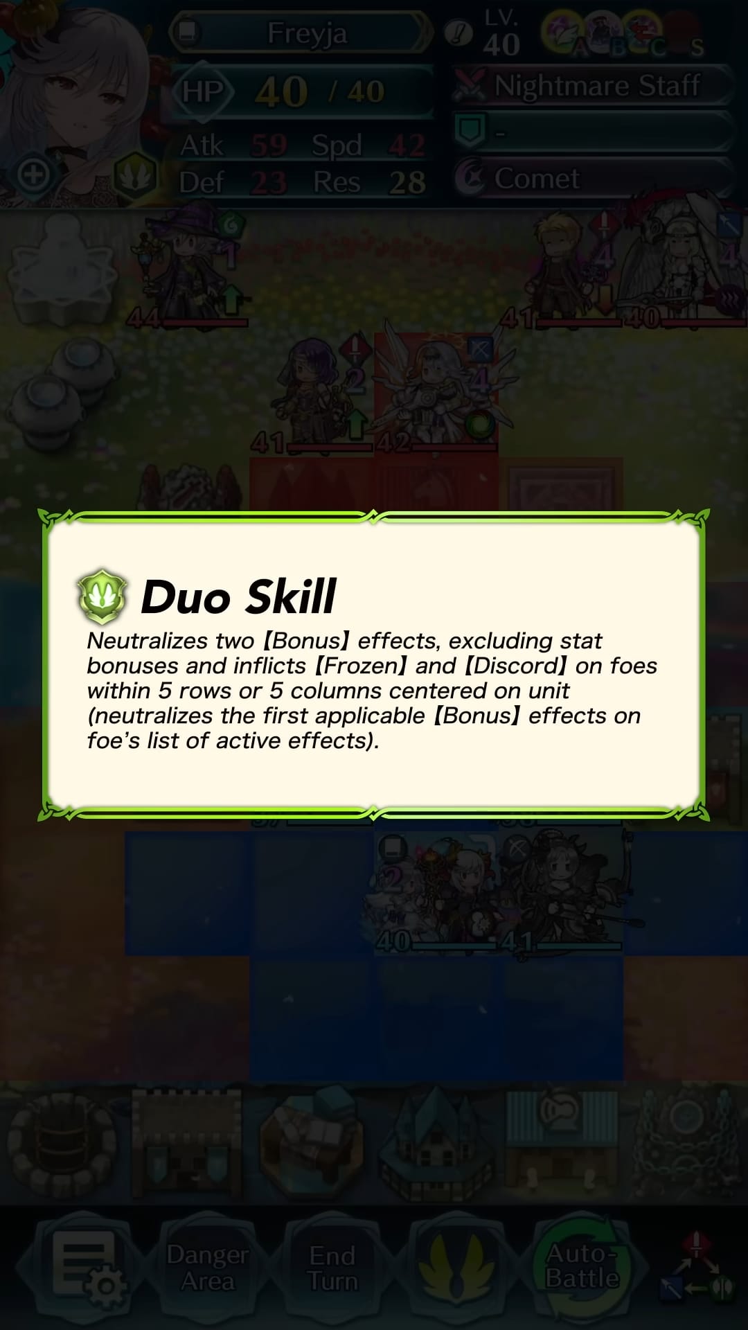 Nintendo et Intelligent Systems ont récemment lancé un nouveau focus de héros spéciaux pour Fire Emblem Heroes, disponible jusqu’au 6 novembre à 07:59. Les personnages du focus sont vêtus pour le festival d’automne. On y retrouve Skrimir (unité cuirassée, bête verte, également disponible en version 4 étoiles) de Radiant Dawn, qui apparaît ainsi pour la première fois dans le jeu, ainsi que trois unités issues d’Heroes : Nerþuz (unité montée, bête rouge), Peony (unité volante, tome bleu) et le duo Freyja avec Eitr (fantassin, tome gris). De plus, une version spéciale de Ranulf (unité montée, bête bleue) de Radiant Dawn est incluse dans les récompenses du nouveau chapitre de la Tourmente +, intitulé « Filles d’Askr 4 », et disponible jusqu’au 17 octobre à 08:59. Ce chapitre fait partie d’une série d’événements tournant autour d’Ash, d’une nouvelle héroïne, Melíai, et de Sharena. À noter que la mise à jour 9.10.0 est sortie la semaine passée et qu’elle apporte les nouveautés détaillées à cette adresse.