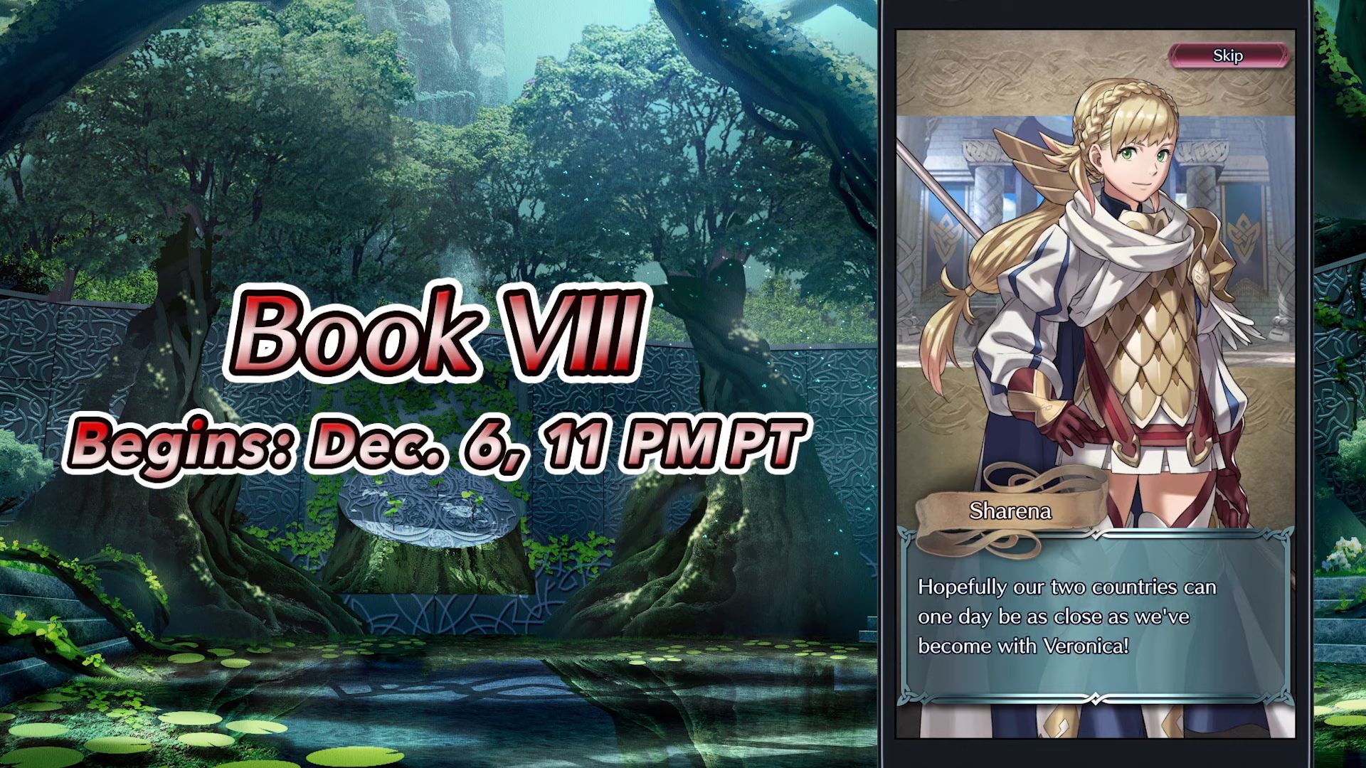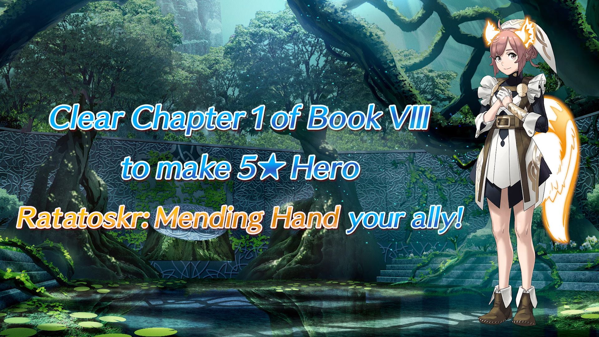 Tout le monde pourra accéder directement au livre VIII, même les personnes qui viennent de commencer le jeu ou qui n’ont pas terminé d’autres livres. De plus, en terminant le chapitre 1 du livre VIII en Normal, Ratatoskr rejoindra la caserne au rang 5. Cette héroïne mythique peut se transformer en écureuil durant le combat et a la capacité de soigner ses alliés et elle-même. Elle place un nouvel effet de Veine divine sur les cases, appelé Veine divine (verte), ce qui lui permet d’entraver les téléportations et l’activation d’aptitudes spéciales.