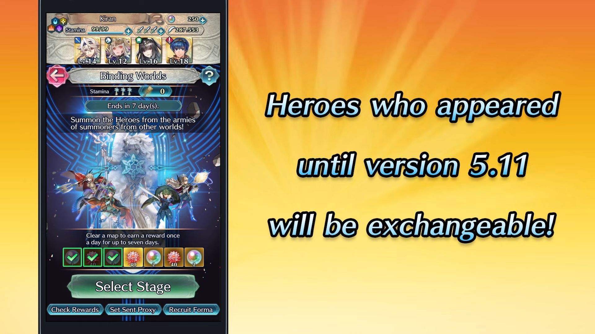Il sera possible de choisir un héros après un total de 40 invocations. Grâce au nouvel événement « Liens d’amitié », on pourra obtenir comme d’habitude 4 tickets de première invocation, et avec l’invocation gratuite de base, on aura donc déjà 5 invocations gratuites, ce qui laissera 35 autres invocations libres. Après ce total de 40 invocations, il sera alors possible de choisir gratuitement un héros parmi les quatre héros. À noter qu’exceptionnellement pour ce focus, il sera possible d’invoquer gratuitement un autre héros après 80 invocations. En invoquant gratuitement un héros après les 40 invocations, on recevra également un objet appelé pierre des cieux. Elle permettra de se procurer divers objets comme des âmes d’éveil, des fruits d’attribut ou des dracofleurs dans la boutique des cieux.