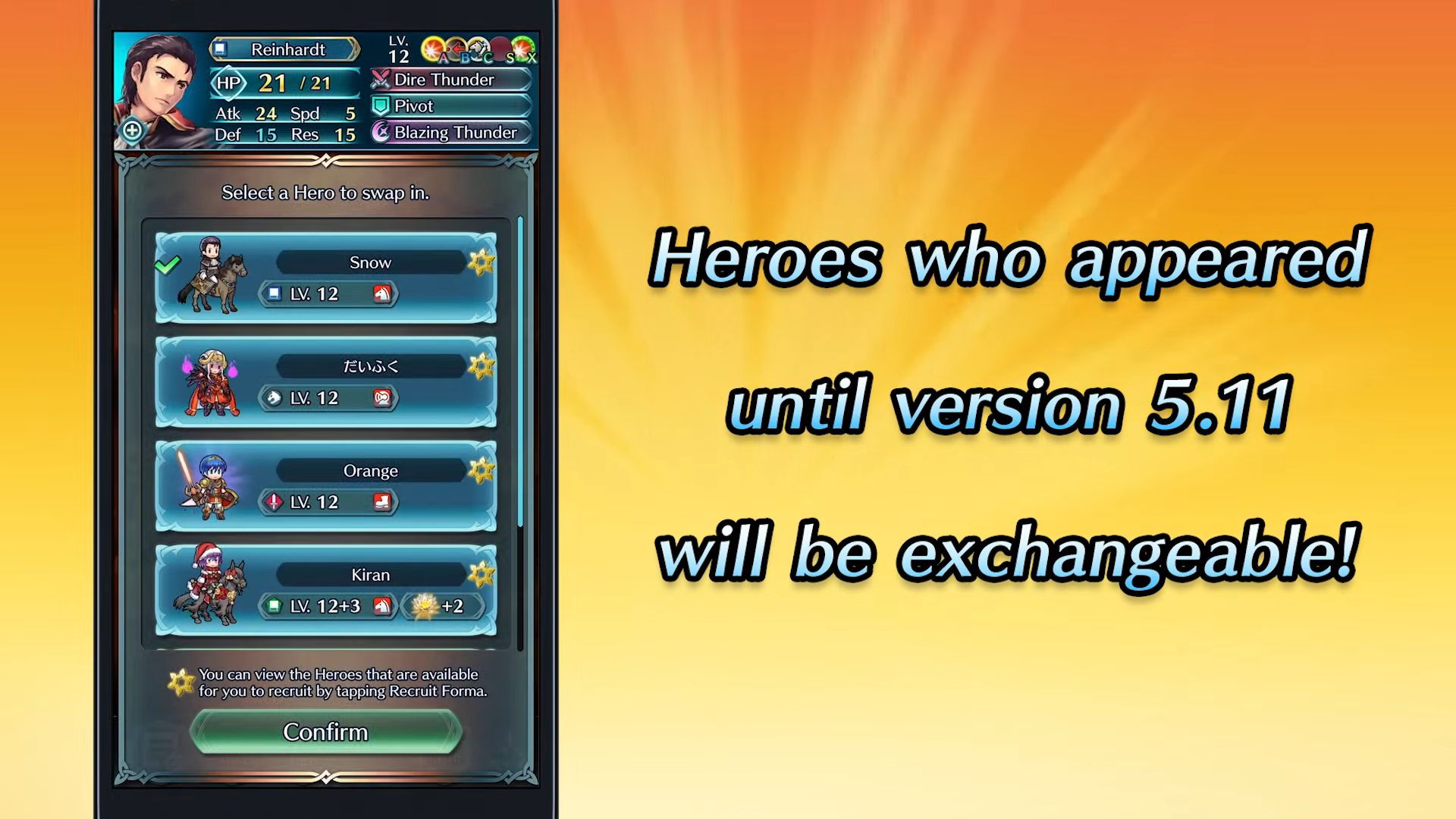 Lucina rejoindra les autres héros mystérieux déjà disponibles, à savoir Líf, Daraen, Ganglöt, Alfred, Tana, Ingrid, Chrom, Alcryst, Eitr, Plumeria, Sonya et Ginnungagap.