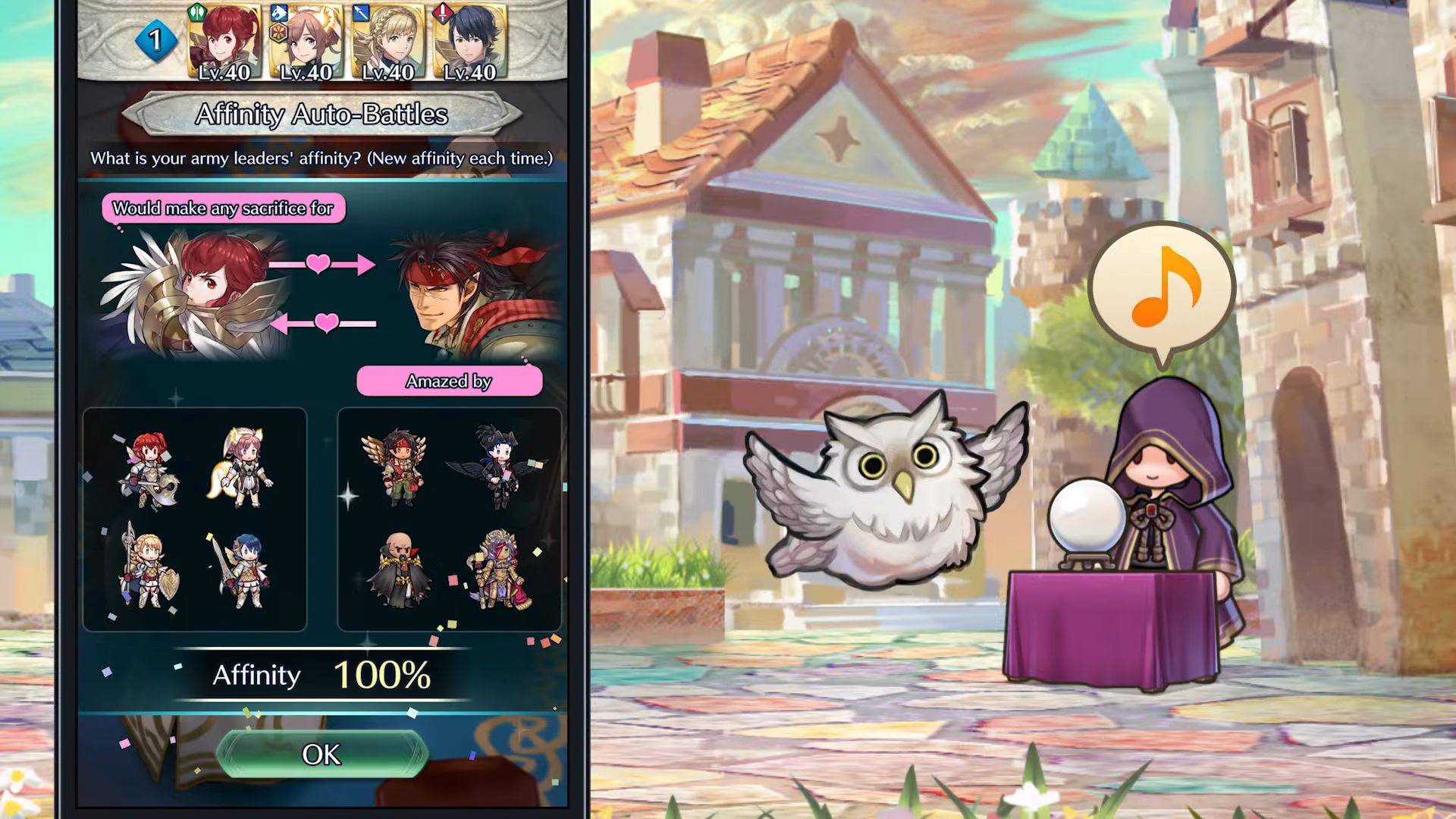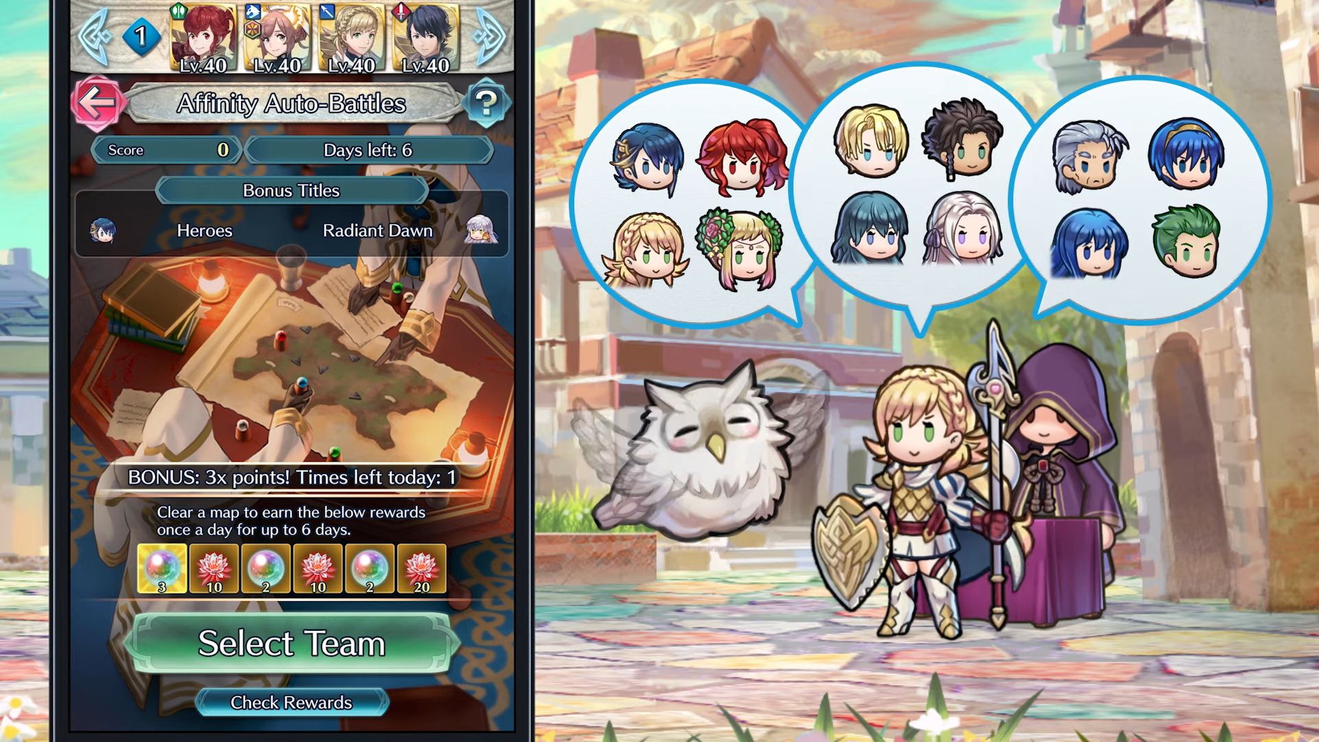 Plus l’affinité est élevée, plus vos héros obtiendront des boosts de caractéristiques lors du combat ! De plus, un bonus d’affinité sera ajouté à votre score. Vu que la fonctionnalité « Combat auto » est utilisée pour ces batailles, plus votre affinité est élevée, plus vous aurez d’avantages lors du combat.