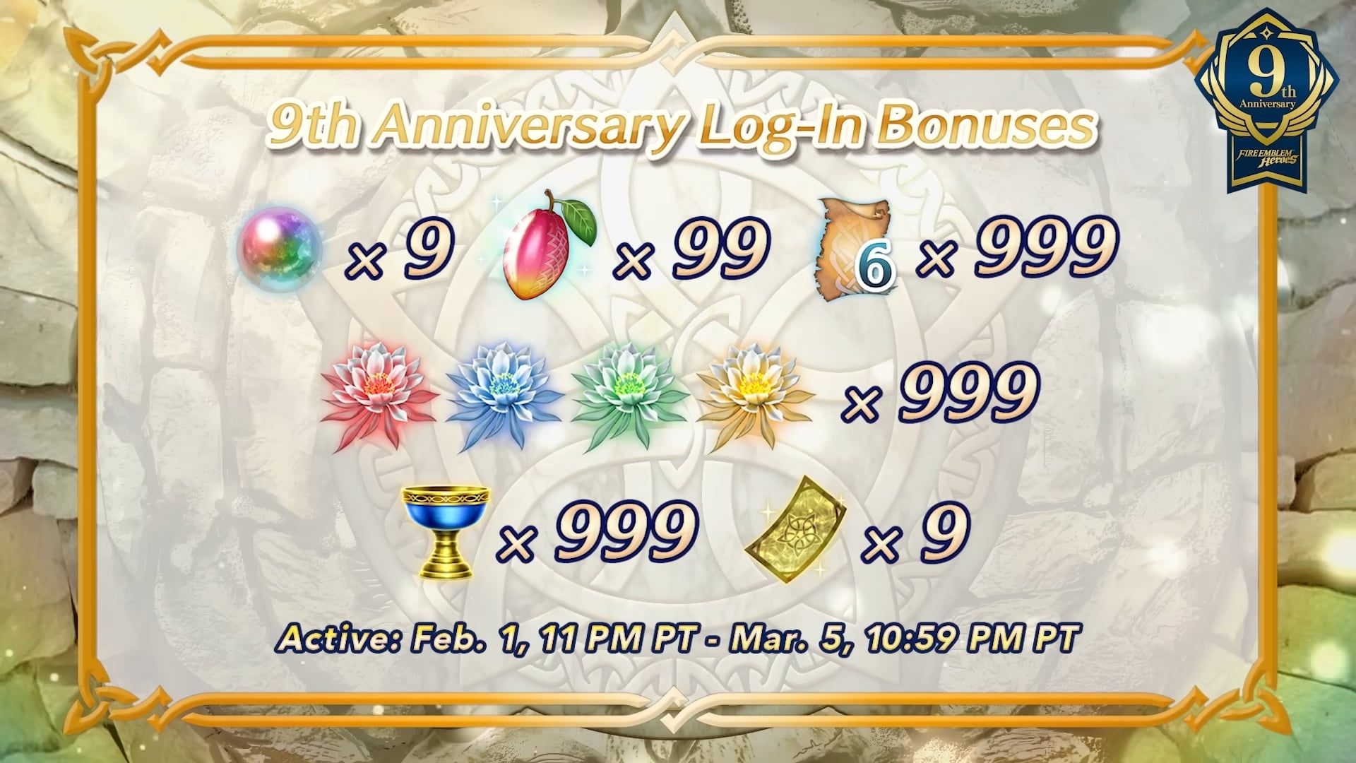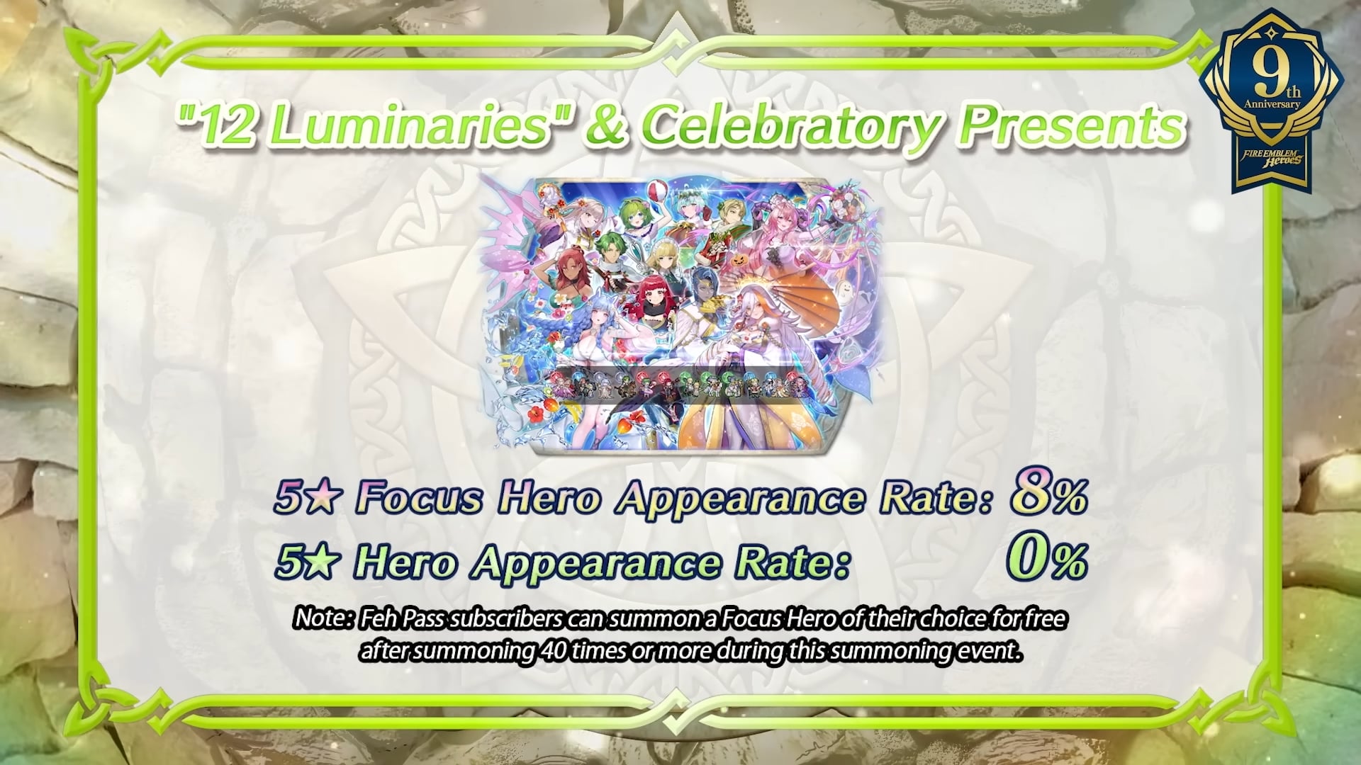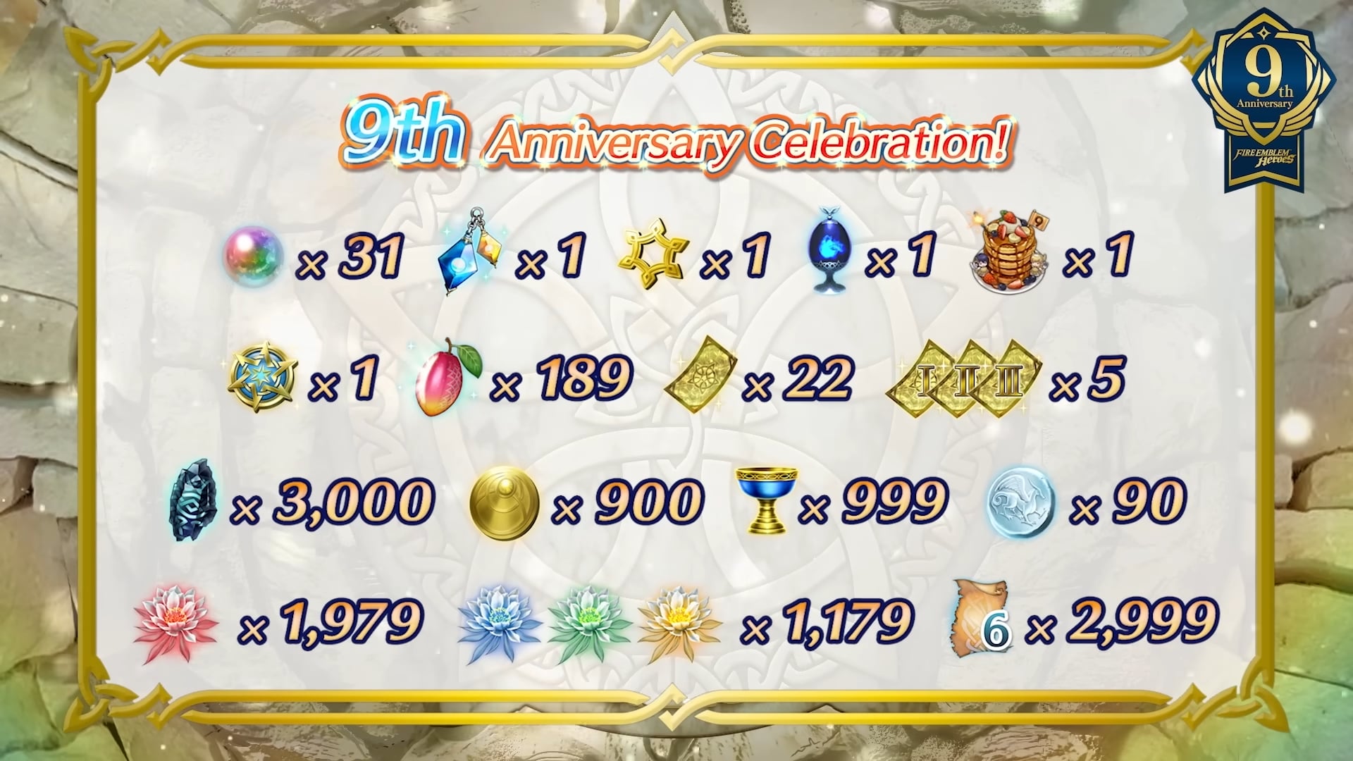 Ensuite, le nouvel épisode de la chaîne Feh a présenté les célébrations pour le 9e anniversaire. Encore plus de détails ont ensuite été donnés via le site officiel du jeu :