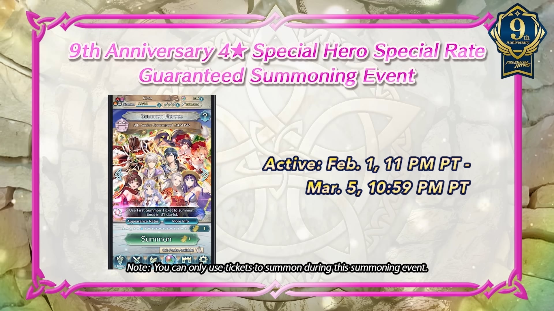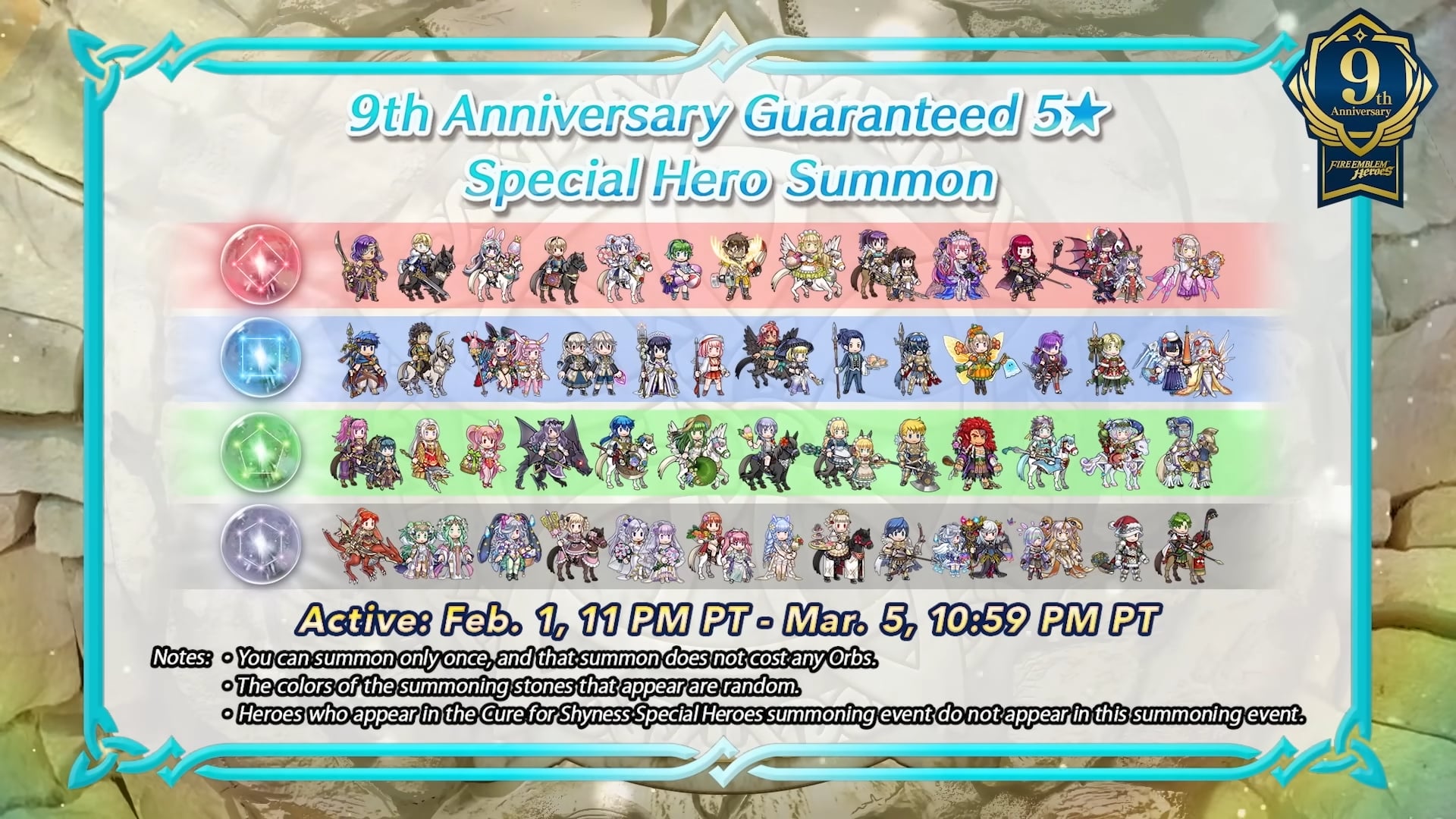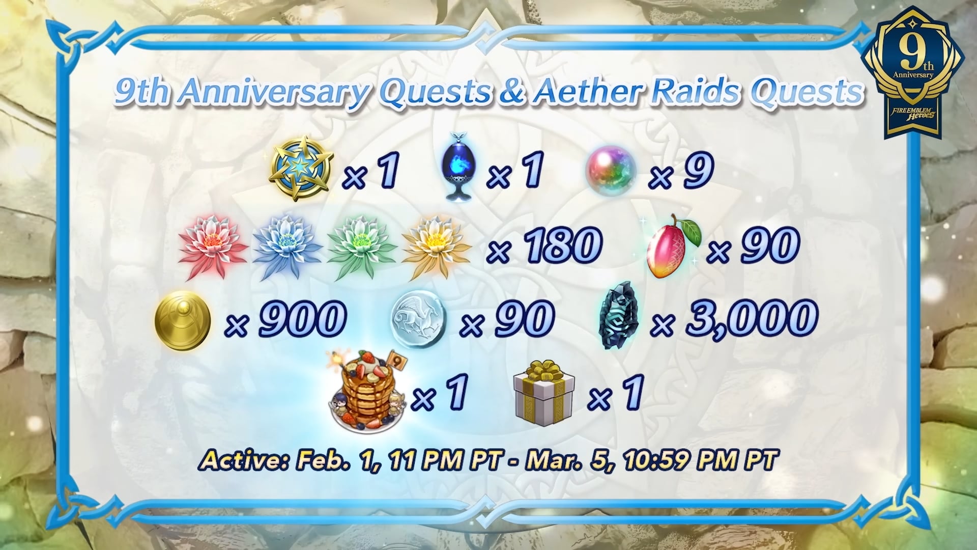 Ensuite, le nouvel épisode de la chaîne Feh a présenté les célébrations pour le 9e anniversaire. Encore plus de détails ont ensuite été donnés via le site officiel du jeu :