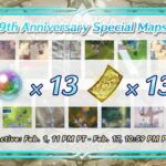À partir d’aujourd’hui, une carte à récompense apparaîtra quotidiennement pendant 13 jours consécutifs. Deux niveaux de difficulté seront disponibles pour ces cartes : Normal et Difficile. Vous pouvez obtenir 13 orbes et 13 tickets d’invocation pour le focus « 9e année : Taux h. spéc. 4★ garanti ».
