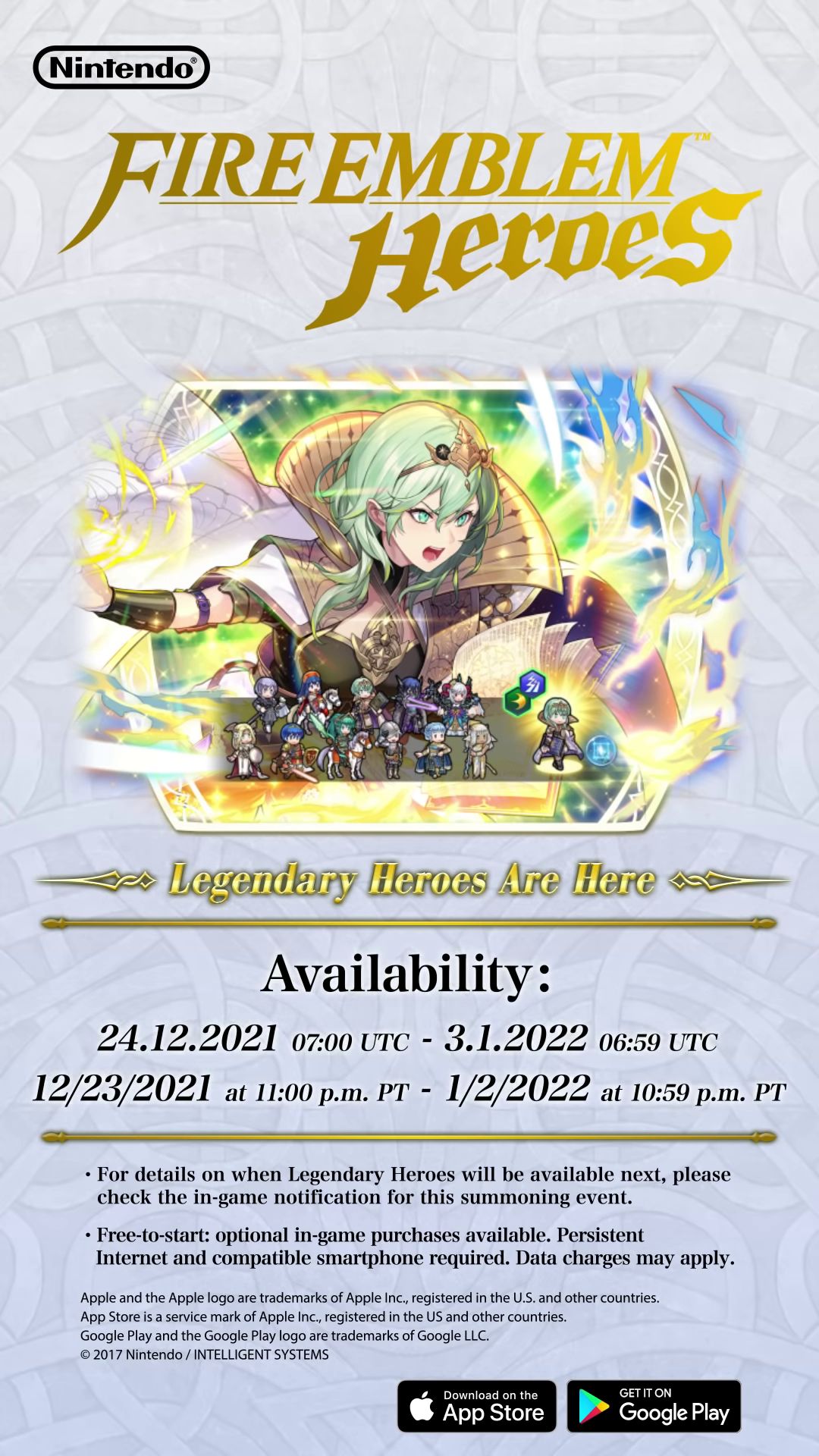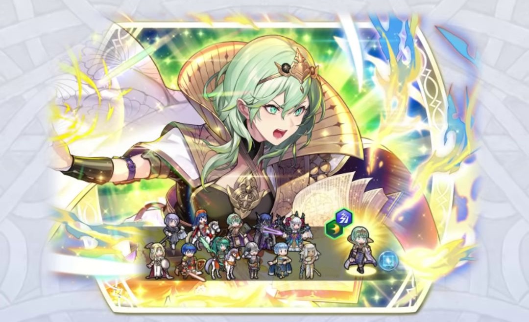 Byleth, Lumière de Fódlan rejoindra les autres héros légendaires ajoutés précédemment : Fjorm, Princesse glaciale, Gunnthrá, Voix onirique, Ike, Illustre rédempteur, Ephraim, Roi légendaire, Daraen, Réceptacle, Lyn, Lady du vent, Ryoma, Samouraï ultime, Hector, Marquis d’Ositia, Lucina, Archère glorieuse, Marth, Roi-Héros, Tiki, Dragon légendaire, Eirika, Princesse résolue, Hríd, Lame glaciale, Azura, Chanteuse vallite, Roy, Lion flamboyant, Alm, Saint-Roi, Eliwood, Noble flamboyant, Julia, Croisée lumineuse, Leif, Sauveur de Thracia, Celica, Reine de Valentia, Chrom, St-Roi couronné, Edelgard, Empereur des Flammes, Seliph, Héros de la lumière, Corrin, Fille de l’obscurité, Dimitri, Roi Sauveur, Lilina, Meneuse brillante, Claude, Roi de l’Unification, Sigurd, Chevalier prédestiné, Byleth, Étoile de Fódlan, Micaiah, Reine radieuse, Fae, Dragon enfantin et Eitri, Jeune sage ainsi que les héros mythiques Eir, Mort clémente, Duma, Dieu de la force, Yune, Déesse du chaos, Naga, Déesse dragon, Sothis, Jeune fille du trône, Thrasir, Sorcière omnicide, Altina, L’escrimeuse, Peony, Doux rêve, Líf, Épéiste létal, Bramimond, L’énigme, Mila, Déesse de l’amour, Mirabilis, Soudaine rêverie, Hel, Reine des morts, Plumeria, Rêve indécent, Freyja, Reine cauchemar, Triandra, Âcre cauchemar, Reginn, Porteuse d’espoir, Seiros, Sainte légendaire, Dagr, Soleil radieux, Ashera, Déesse de l’ordre, Nótt, Lune élégante, Ullr, Maîtresse de l’arc, Ótr, Frère du roi, Thórr, Divinité guerrière et Ash, Vassale d’Askr.