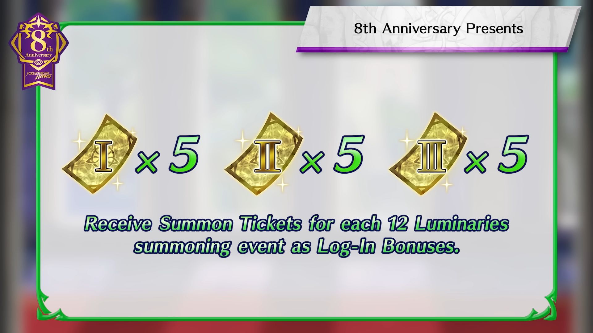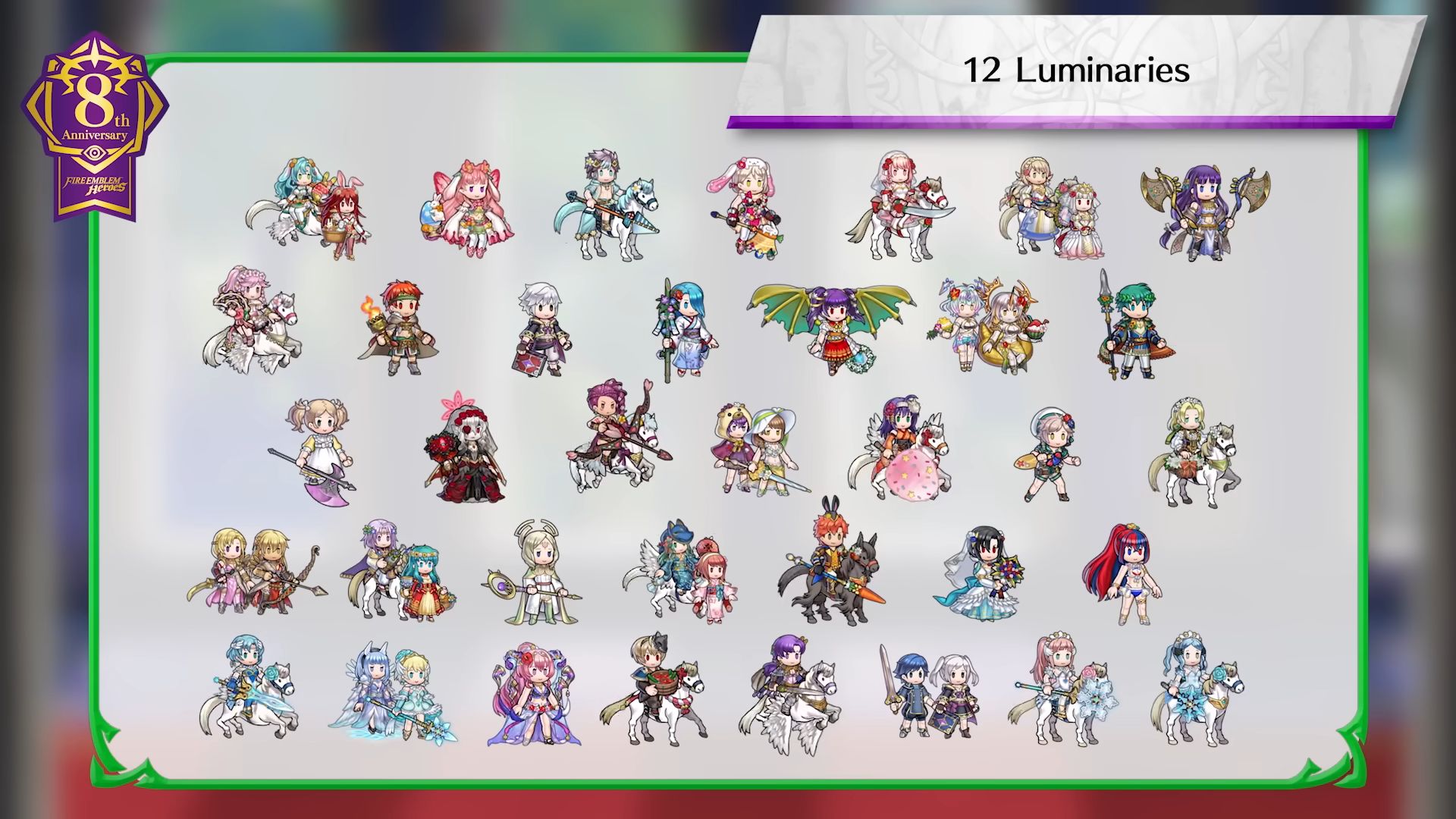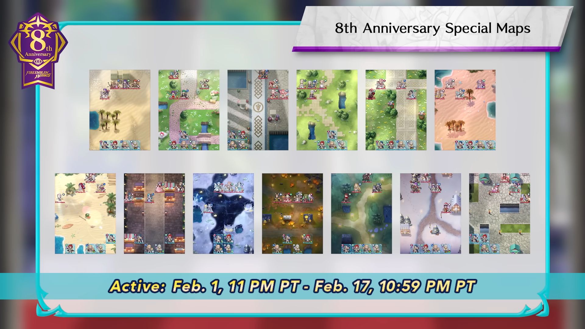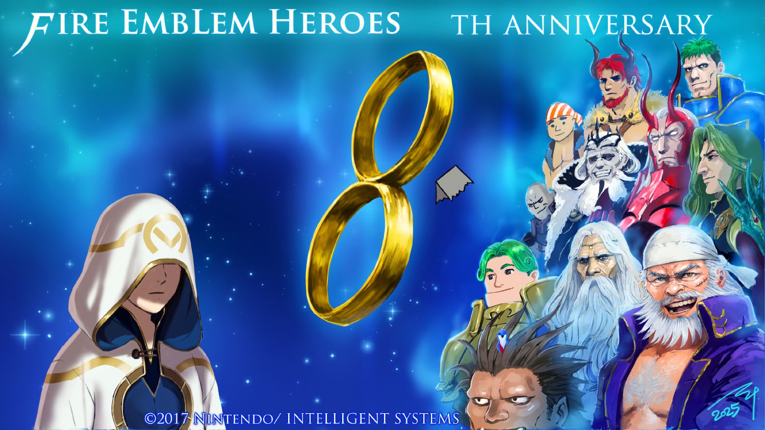 Plusieurs artistes ayant travaillé ces derniers mois sur plusieurs unités de Fire Emblem Heroes ont réalisé des illustrations spéciales célébrant le huitième anniversaire du jeu. Elles sont listées en haute qualité sur le site officiel dédié à cette adresse, qui regroupe également les illustrations des anniversaires précédents.
