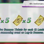 Le cinquième jour, vous pourrez obtenir 8 tickets d’invocation pour le focus du huitième anniversaire « Célébration : Taux h. spéc. 4★ garanti », et le dixième jour, vous pourrez même obtenir un lien de passage !