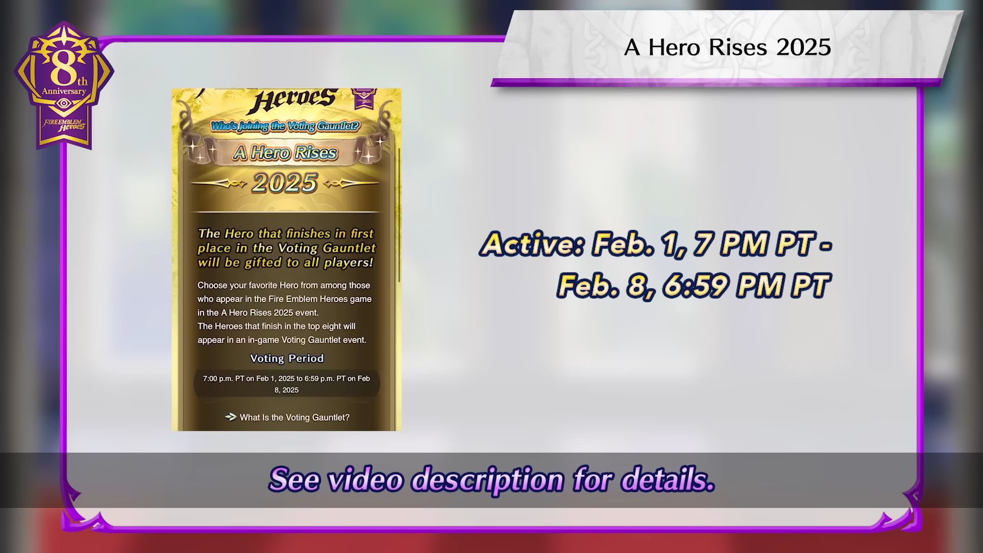 Pour fêter le huitième anniversaire de Fire Emblem Heroes, l’événement où les joueurs votent pour les héros sortis depuis le début du jeu revient une nouvelle fois sous le nom : Un héros émerge 2025 !