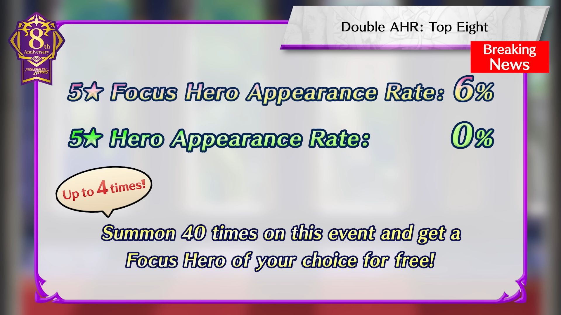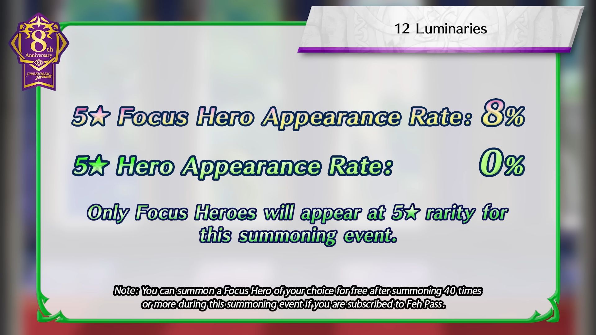 Le taux d’apparition initial des héros 5★ du focus sera de 8 % ! (Celui des héros 5★ normaux sera de 0 %.)