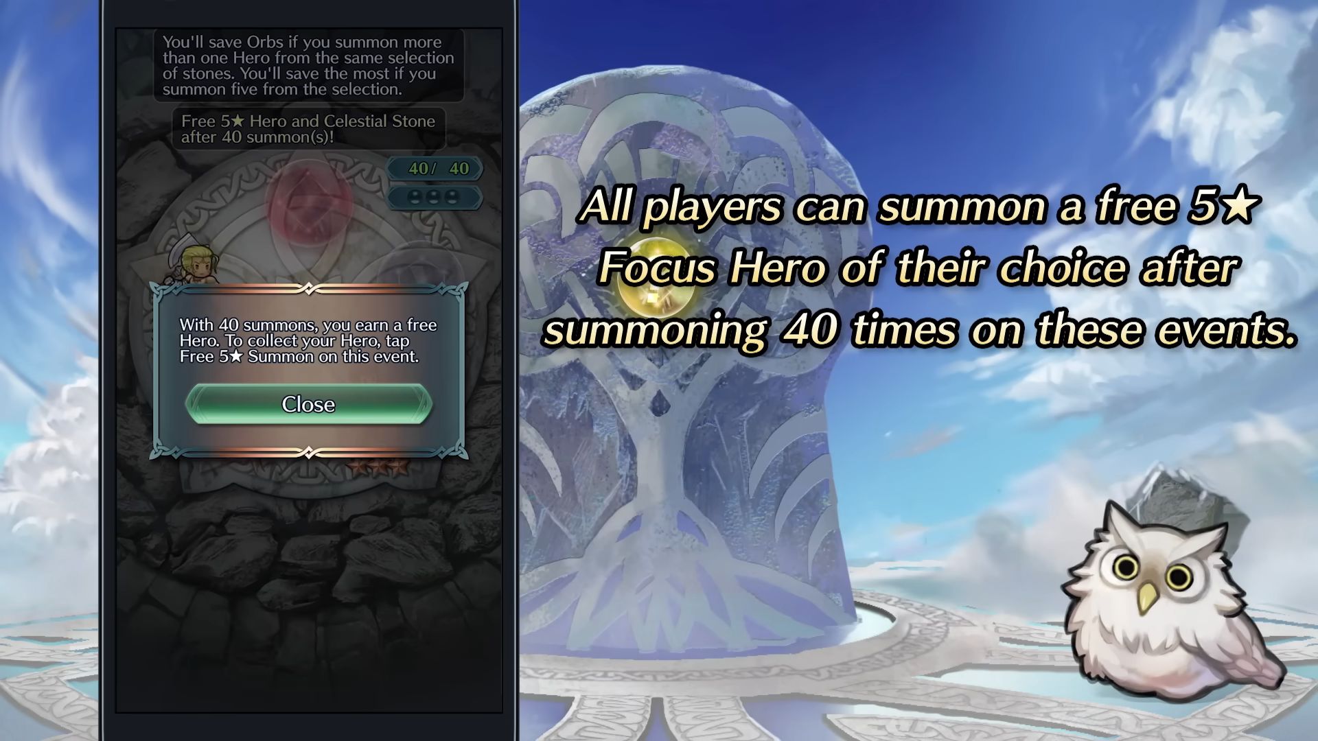 , lorsque vous terminez une séance d’invocation après avoir invoqué des héros au moins 40 fois au cours d’un focus, vous pourrez choisir un héros 5★ de ce focus à invoquer gratuitement lors de votre prochaine invocation en touchant le bouton d’invocation 5★ gratuite, et vous recevrez une pierre des cieux