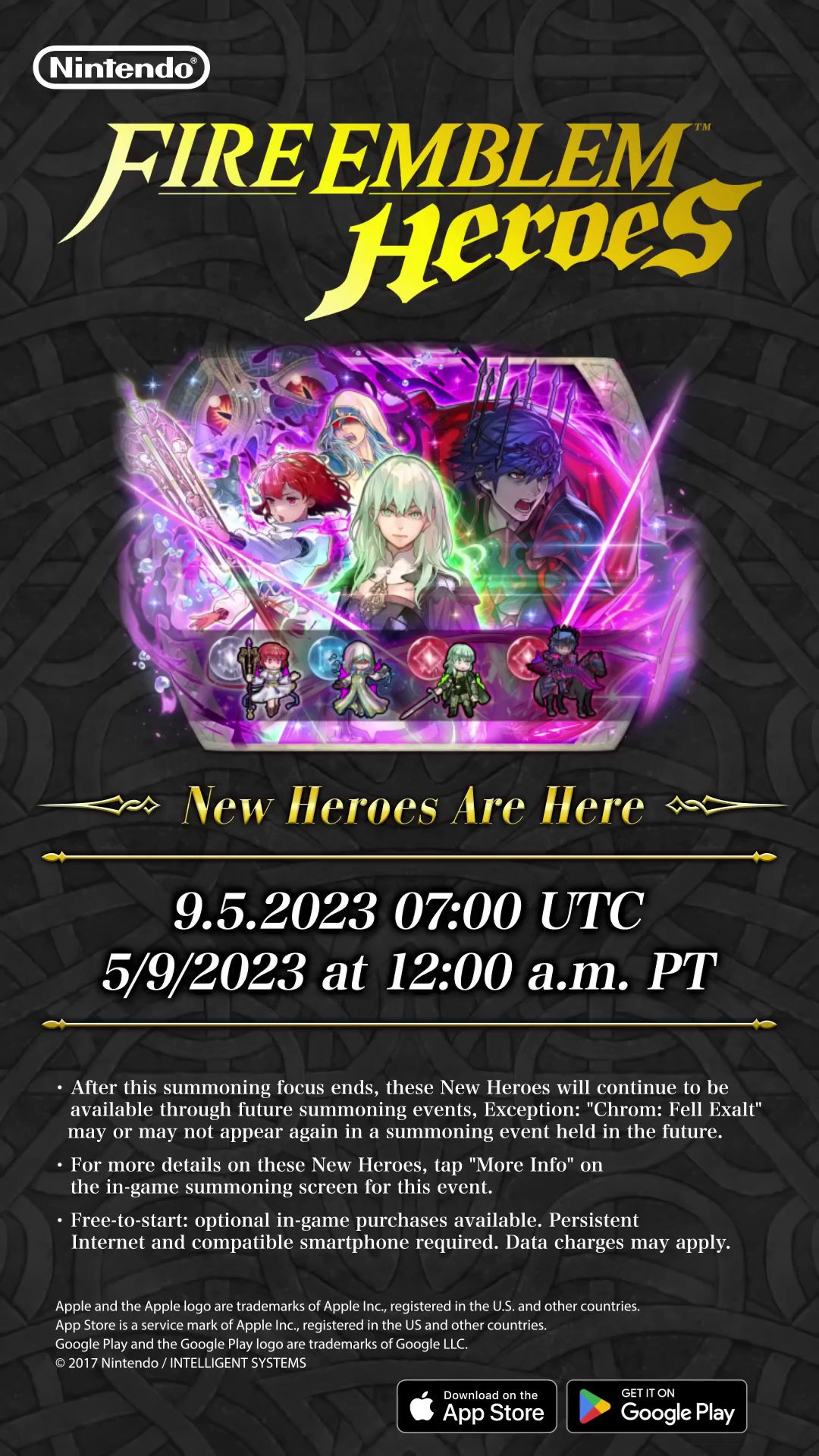 Nintendo et Intelligent Systems ont révélé le focus annuel des nouveaux héros déchus pour Fire Emblem Heroes. Comme d’habitude, ils proviennent tous de jeux différents. Disponible à partir du 9 mai à 9:00 jusqu’au 8 juin à 8:59, ce focus mettra donc en scène Byleth, Vassale vengeresse (fantassin, épée) de Three Hopes, Maria, Sacrifice rituel (fantassin, bâton) de Mystery of the Emblem, Anankos, Silence déchaîné (unité cuirassée, souffle bleu) de Fates et enfin une version mystérieuse de Chrom (unité montée, épée) d’Awakening. Il rejoint les autres héros mystérieux déjà disponibles, à savoir Líf, Daraen, Ganglöt, Alfred, Tana et Ingrid. Les nouveaux héros apparaîtront aussi dans l’événement « Liens d’amitié : Profond désespoir », disponible également à partir du 9 mai à 9:00. Il y aura également la grande bataille contre Linus, Chien sauvage de The Blazing Blade qui sera disponible à partir du 18 avril à 9:00.
