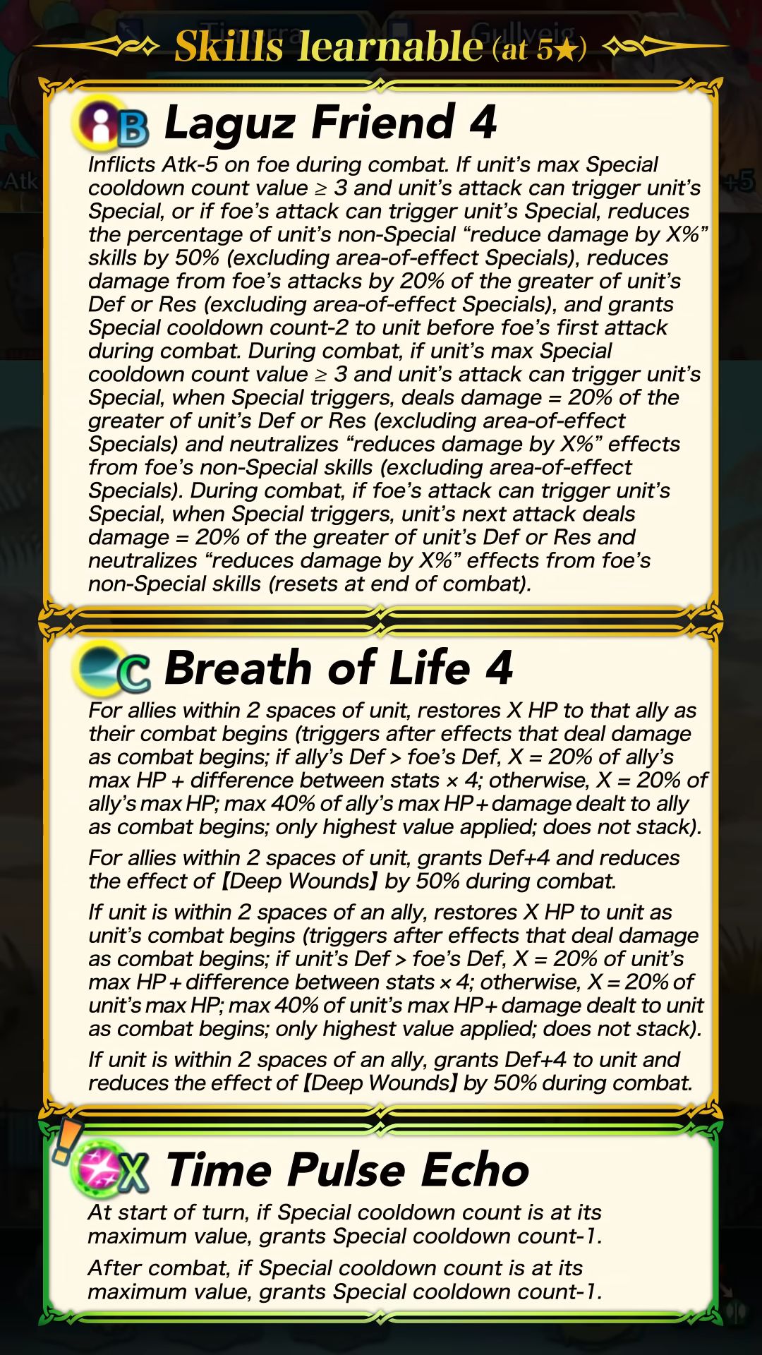 La version en symbiose de Timerra rejoint celles de Peony, Triandra, Nino, Ivy, Shiida, Azura, Micaiah et Eirika. Il sera possible de choisir un héros après un total de 40 invocations. De plus, exceptionnellement pour ce focus, il sera possible d’utiliser jusqu’à deux fois l’invocation 5★ gratuite, soit un total de 80 invocations pour choisir le deuxième personnage de notre choix. Grâce au nouvel événement « Liens d’amitié : esprits en ébullition » disponible jusqu’au 1er octobre à 8:59, on pourra obtenir comme d’habitude 4 tickets de première invocation, et avec l’invocation gratuite de base, on aura donc déjà 5 invocations gratuites, ce qui laissera 35 autres invocations libres. En invoquant gratuitement un héros après les 40 invocations, on recevra également un objet appelé pierre des cieux. Elle permettra de se procurer divers objets comme des âmes d’éveil, des fruits d’attribut ou des dracofleurs dans la boutique des cieux.