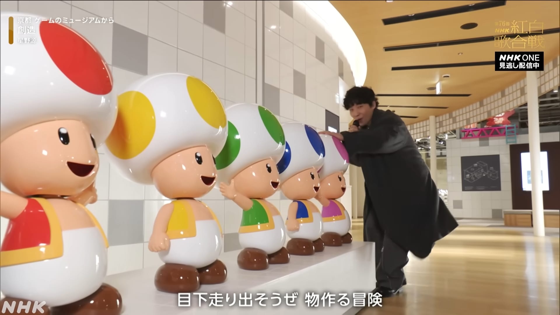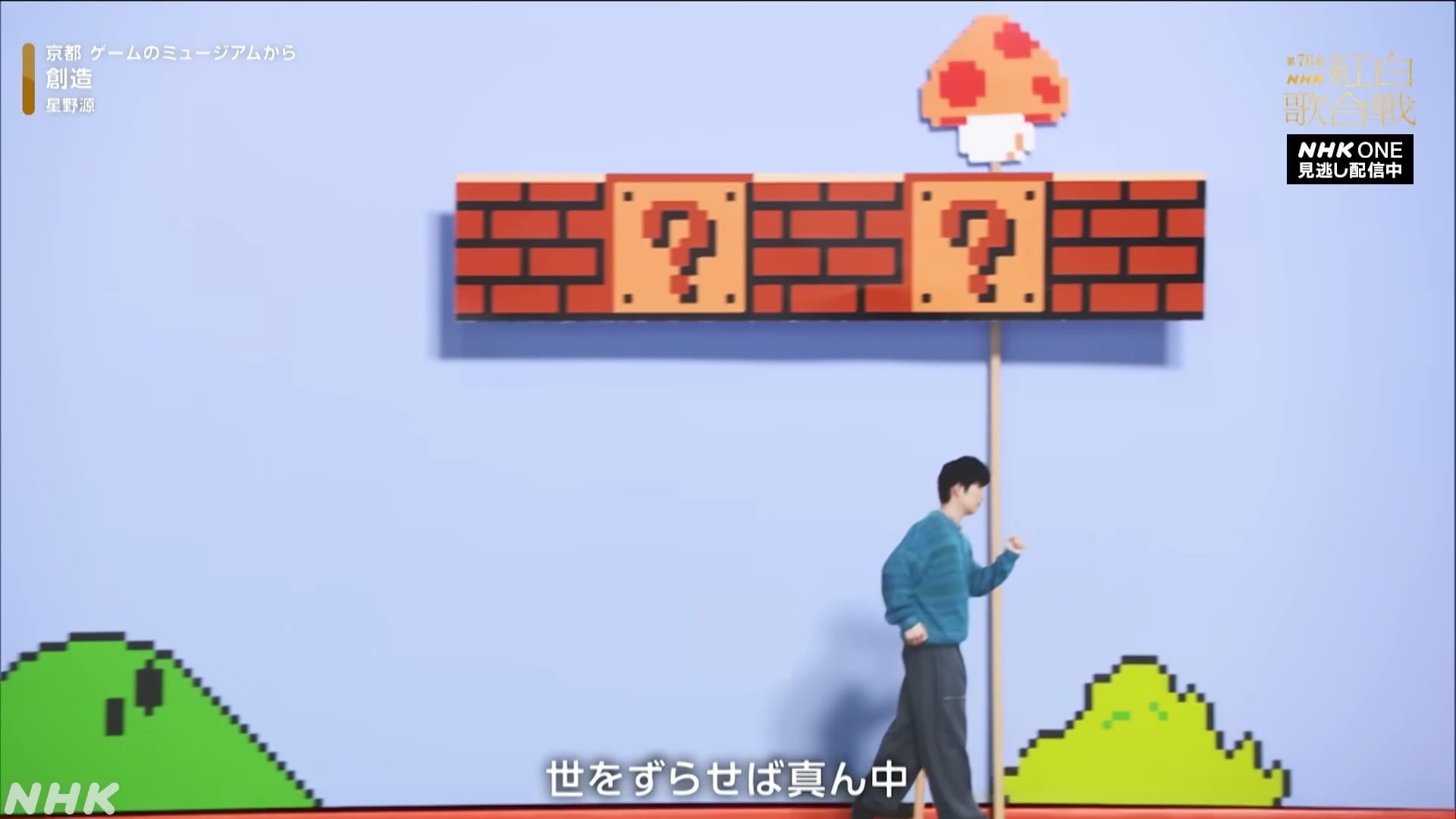 Surprise lors de la 76e édition de l’émission musicale Kōhaku Uta Gassen de la chaîne NHK diffusée durant la soirée du 31 décembre 2025 au Japon, Gen Hoshino a interprété Create au sein d’un lieu unique : le véritable Nintendo Museum. Cette chanson, composée, arrangée et produite par Hoshino, avait été créée pour le 35e anniversaire de Super Mario Bros. en 2021. Durant l’émission, le chanteur a fait un tour du Nintendo Museum tout en interprétant son morceau. Au début, il est entouré par plusieurs musiciens, dont Hirotaka Sakurada au clavier, que l’on connaît pour son travail en tant que pianiste et claviériste pour différents albums, singles et concerts de Kalafina et FictionJunction / Yuki Kajiura, et qui travaille régulièrement avec Hoshino. C’est d’ailleurs Sakurada qui jouait aussi du piano pour l’enregistrement de Create. Hoshino se déplace et va à la rencontre d’un invité très spécial : Koji Kondo, le célèbre compositeur de Super Mario Bros. en personne. Alors que celui-ci joue du mélodica, Hoshino pose son micro et prend à la place une véritable manette Famicom, plus précisément celle équipée d’un microphone. Le chanteur accompagne Kondo à la fois au chant avec la manette et à la guitare. Hoshino continue de faire le tour des lieux, puis quitte le musée pour se rendre à l’extérieur du bâtiment, jusqu’au lieu représentant la fin d’un niveau. Voici la vidéo complète de sa performance :