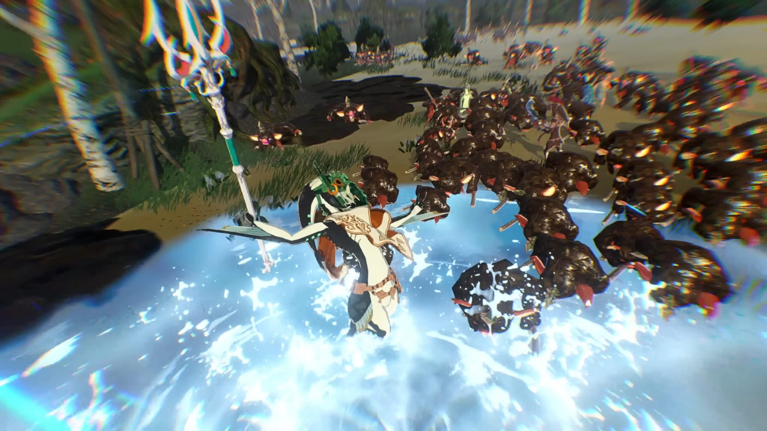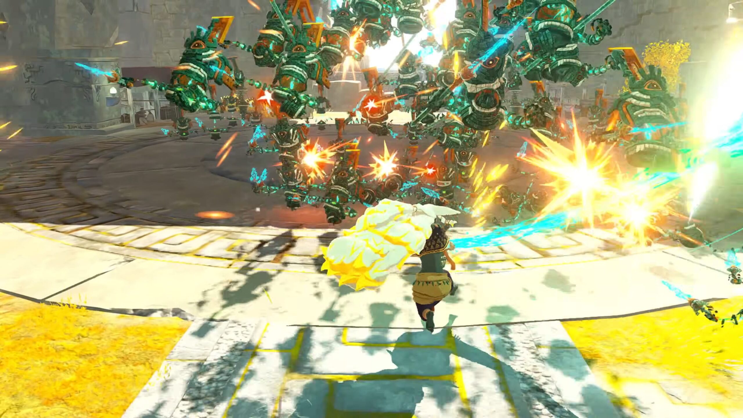 Matsushita indique aussi qu’Hyrule Warriors : Les Chroniques du Sceau ne conte pas seulement le récit de la guerre du Sceau, mais aussi « le récit des joueurs eux-mêmes à travers leurs batailles pour sauver Hyrule ». Hayashi l’explique en disant que certains éléments des autres Hyrule Warriors, comme éliminer des hordes d’ennemis et faire preuve de créativité pour affronter des boss redoutables, ont été affinés et poussés encore plus loin sur Nintendo Switch 2. Ici, on pourra élaborer sa propre stratégie, comme en combinant des objets ou en faisant équipe avec des alliés, ce qui fait donc écho aux nouveautés introduites dans Tears of the Kingdom.