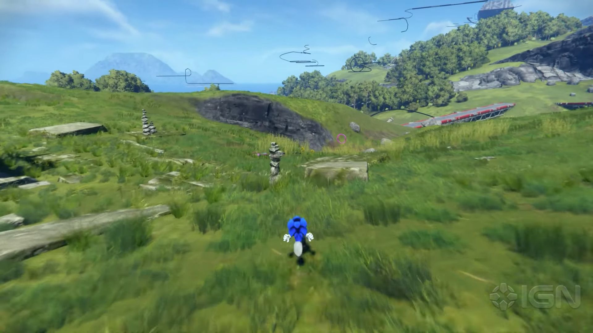 Après le nouveau teaser qui permettait de découvrir les premières séquences de gameplay, IGN a diffusé comme promis sa première vidéo de Sonic Frontiers. Longue de 7 minutes, elle montre Sonic en train d’explorer différentes zones, de récolter divers éléments comme des cœurs, des pièces et des anneaux, et de résoudre quelques énigmes. On ne voit pas d’affrontements contre des ennemis (il y a cependant de petites créatures de pierre), mais demain, le 3 juin, IGN diffusera d’autres phases de gameplay qui se concentreront sur les capacités de combat de Sonic.