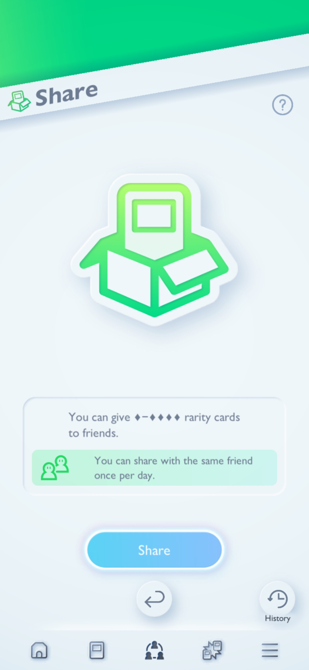 À partir du 30 octobre, de nouvelles fonctionnalités et d’autres nouveautés seront également disponibles. Tout d’abord, il faut savoir qu’une nouvelle fonctionnalité de partage sera implémentée. Elle permettra d’offrir des cartes d’un niveau de rareté à ♦ à ♦♦♦♦ aux personnes inscrites dans la liste d’amis. Il sera possible d’offrir une carte par jour et par personne et en recevoir une par jour via cette fonctionnalité. Elle s’étendra jusqu’aux cartes issues de la dernière extension en date.