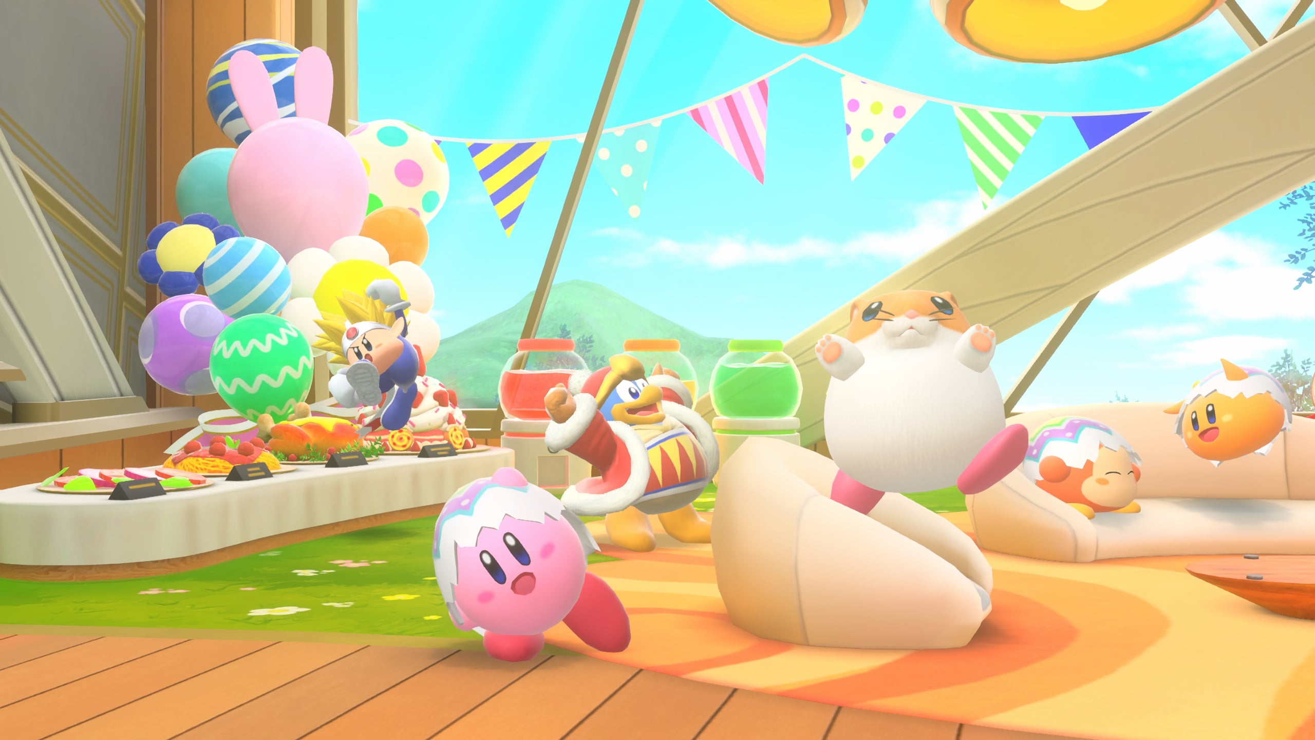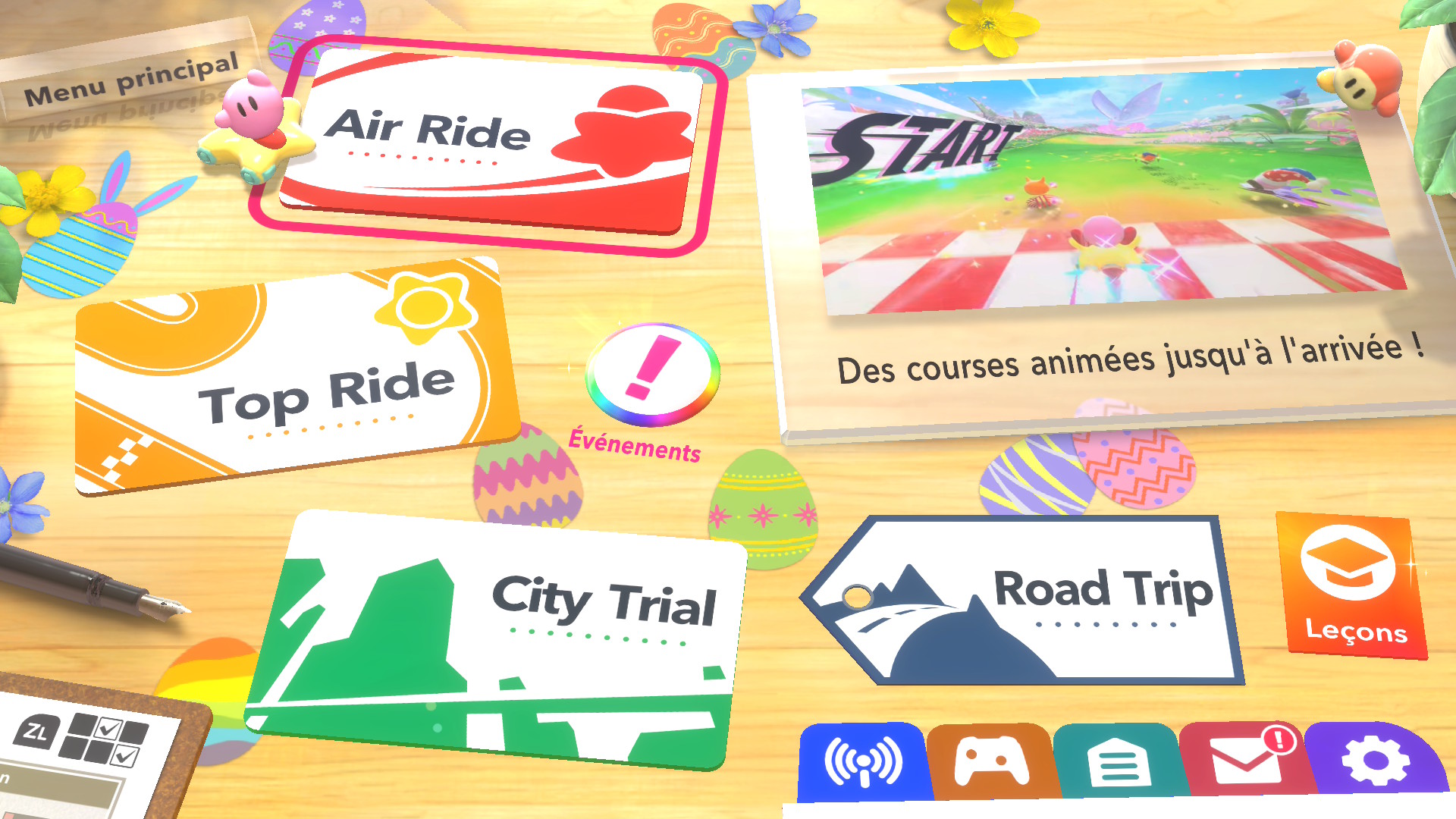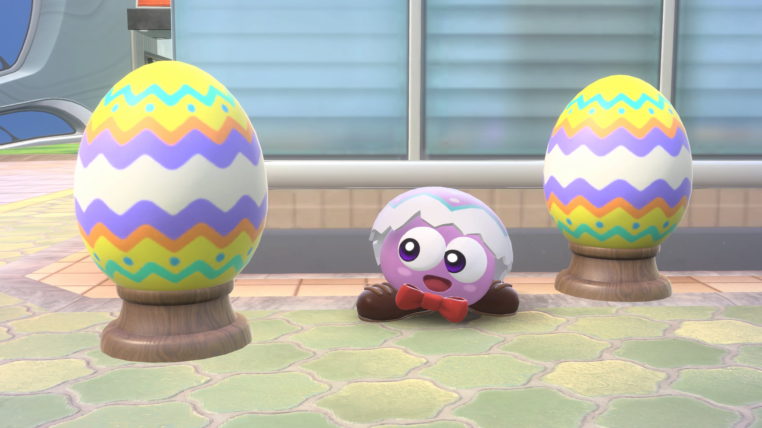 Comme ce fut le cas pour Noël, le Nouvel An et la Saint-Valentin, Sora Ltd. et Bandai Namco Studios célèbrent aussi Pâques dans Kirby Air Riders avec des décorations spéciales à admirer dans trois endroits différents. Celles du menu principal et du foyer sont visibles jusqu’au 9 avril à 05:00 du matin (heure française), tandis que celles qui se trouvent à Skaïa, en jouant donc au mode City Trial, peuvent être admirées jusqu’au 16 avril à 05:00 du matin (heure française).