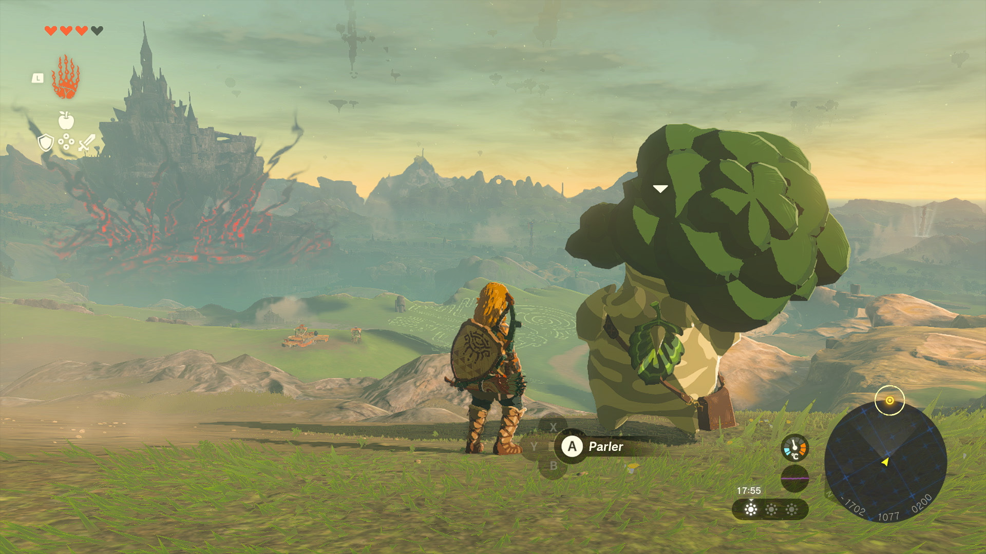 « Voici les Korogus, les fées des bois espiègles qui se cachent aux quatre coins d’Hyrule. Si vous les trouvez, elles vous récompenseront d’une noix korogu dont Noïa a besoin pour jouer de ses maracas ! »