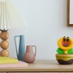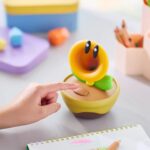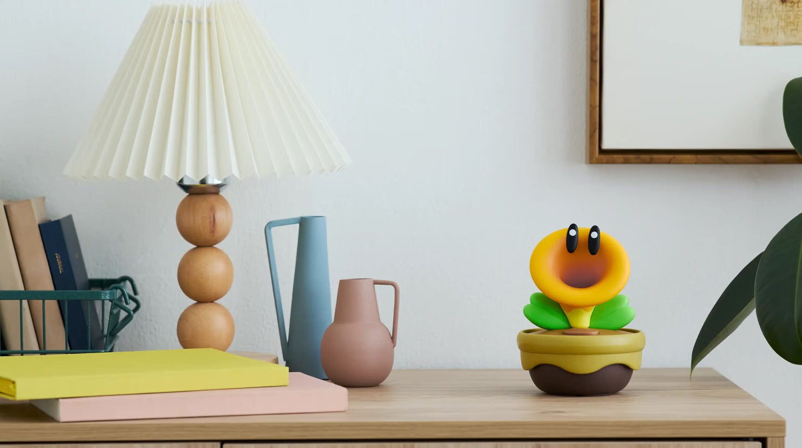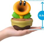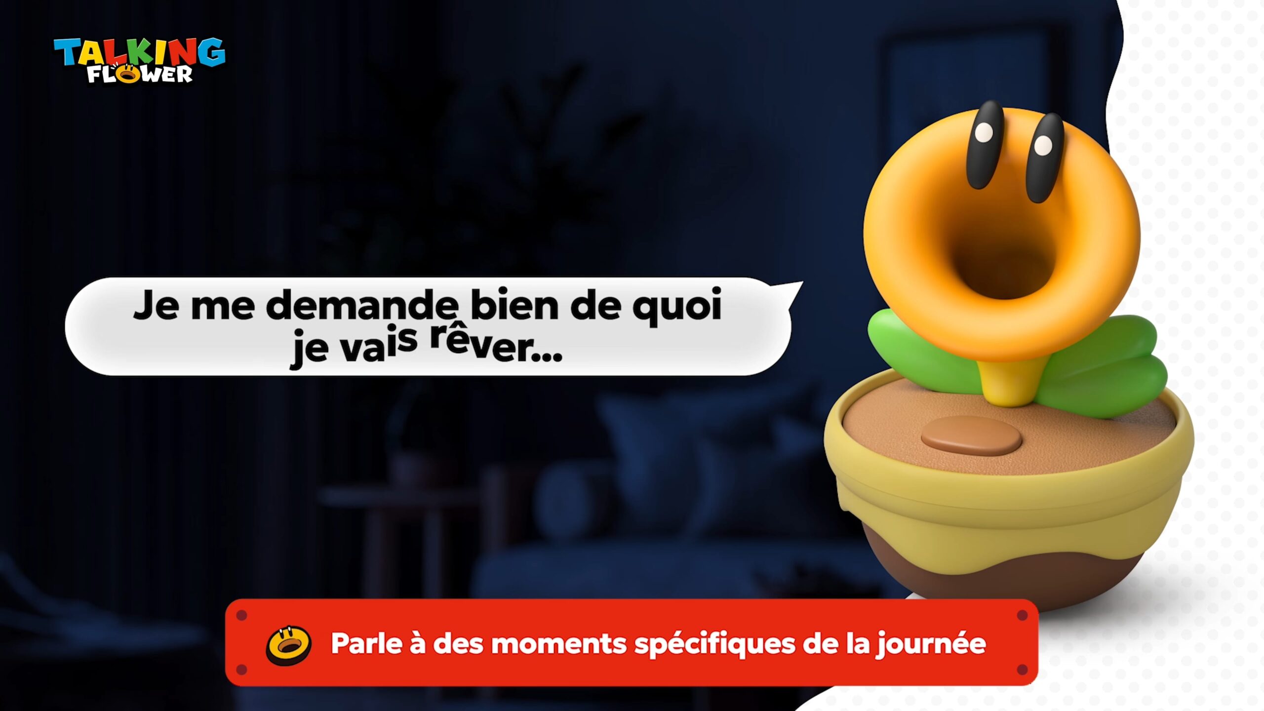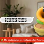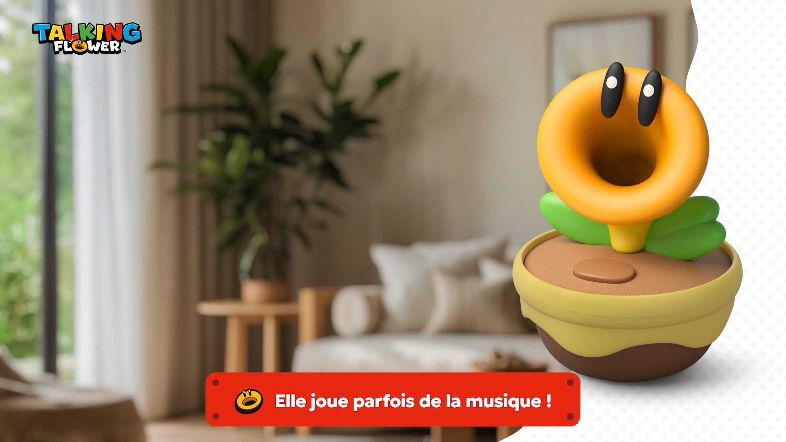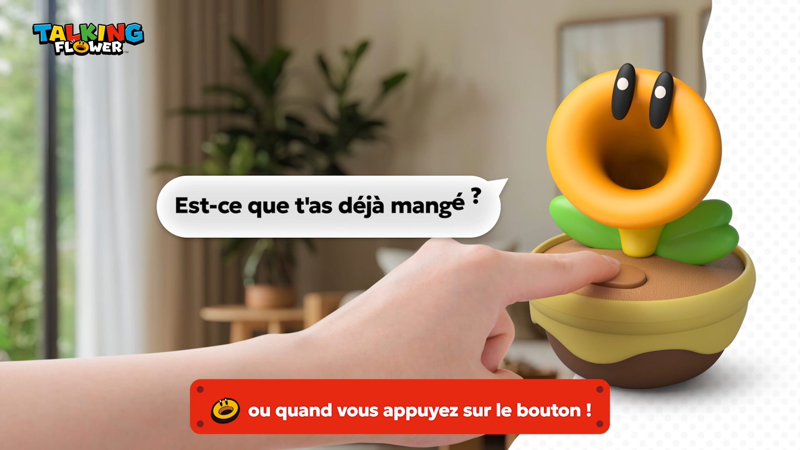 Pour que cette réplique de fleur cancan, il faudra utiliser des piles. On pourra la laisser s’exprimer quand elle en a envie, ou appuyer sur le bouton pour la faire parler. Si l’on appuie plusieurs fois, elle pourra dire une réplique spéciale. Il sera possible de paramétrer l’objet pour qu’il nous salue au réveil ou nous souhaite bonne nuit. La fleur cancan commentera aussi différents moments de la journée, pourra ressentir la température, nous dire quand il faudra changer ses piles, ainsi que dire l’heure. En maintenant le bouton enfoncé, elle s’exclamera « Je suis une fleur prodiiige ! » et se mettra à jouer de la musique provenant de Super Mario Bros. Wonder. Maintenir le bouton enfoncé permettra aussi à la fleur cancan d’arrêter de parler.