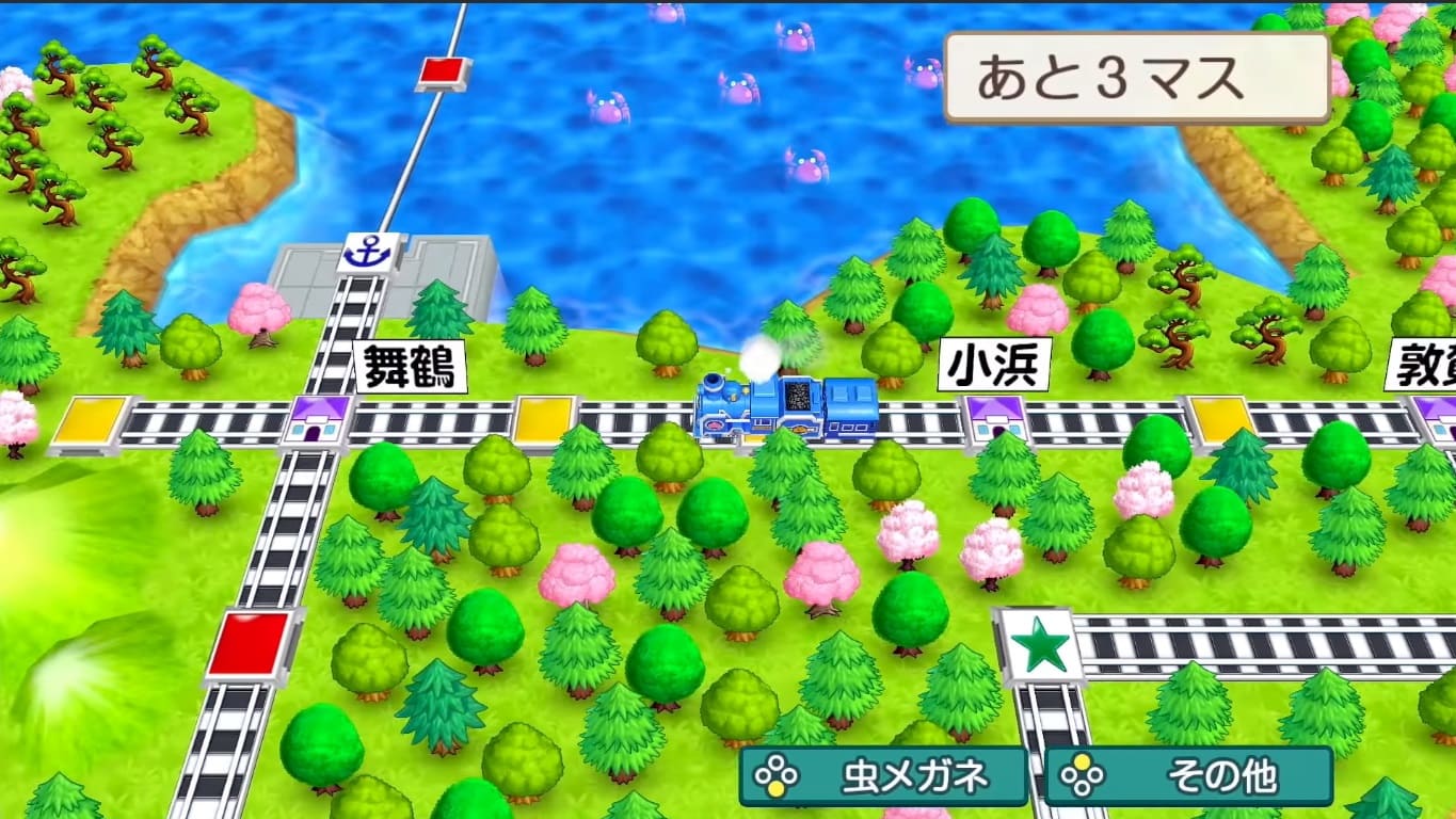 Momotaro Dentetsu propose un principe de jeu assez simple : le joueur voyage en train, en bateau ou en avion et doit tenter de s’enrichir en réalisant diverses transactions commerciales comme acheter des propriétés ou traiter avec des entrepreneurs concurrents, à la manière d’un Monopoly sur lequel on aurait saupoudré du Sugoroku. Il faut aussi compter sur la présence de dieux (de la pauvreté, de la richesse…) qui peuvent influer sur le jeu. Pour les curieux, sachez qu’il n’y a malheureusement aucune chance de voir le titre sortir en dehors du Japon, dommage.