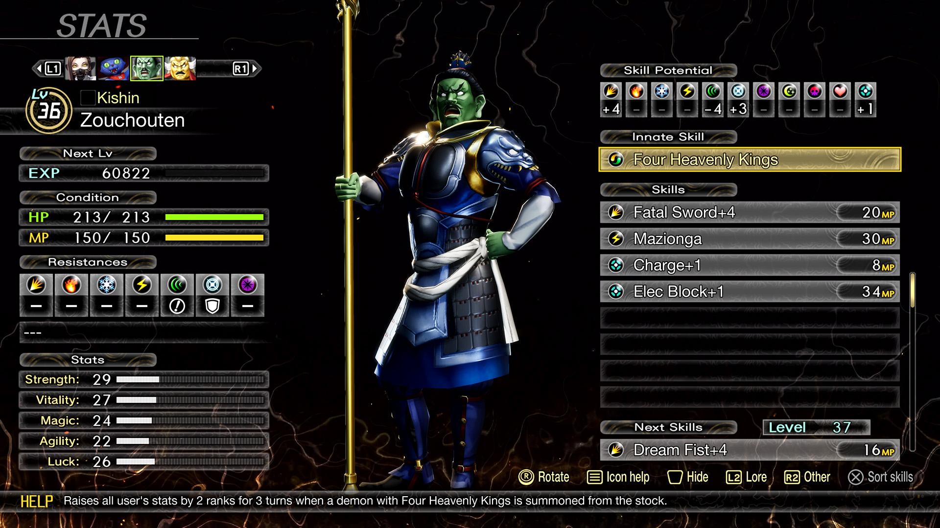 Dans Vengeance, chaque démon possède une compétence passive unique. Elles permettent d’augmenter la puissance des compétences d’attaque, octroyer des effets puissants si un démon est présent ou encore faciliter les conservations avec les démons. Combiner des démons permettra de mettre en place différentes stratégies de combat. Voici quelques exemples :