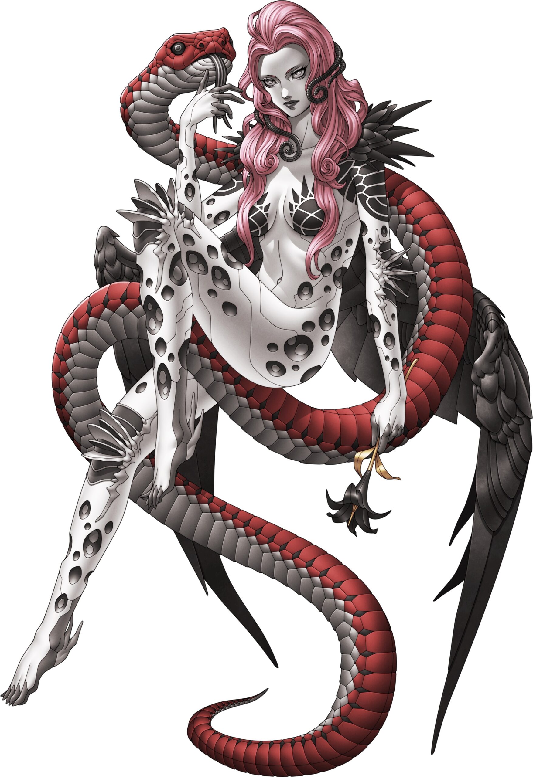 Masayuki Doi explique que le Qadištu est un démon qu’il tenait vraiment à inclure dans Shin Megami Tensei V et qui a finalement été incorporé avec la création de Vengeance. L’origine vient d’un terme sumérien qui désigne celles qui servaient les dieux de l’époque ou celles qui occupaient des positions similaires aux prêtresses. Il existe plusieurs interprétations de ce que faisait réellement le Qadištu, mais dans Shin Megami Tensei V : Vengeance, les développeurs ont décidé de l’interpréter comme « L’Opprimée », en l’associant au thème de l’histoire. En exprimant les éléments chaotiques centrés sur le Dieu Serpent, Masayuki Doi que l’introduction de démons qui tentent les gens, les égarent et provoquent la ruine ajouterait de la profondeur à l’histoire.
