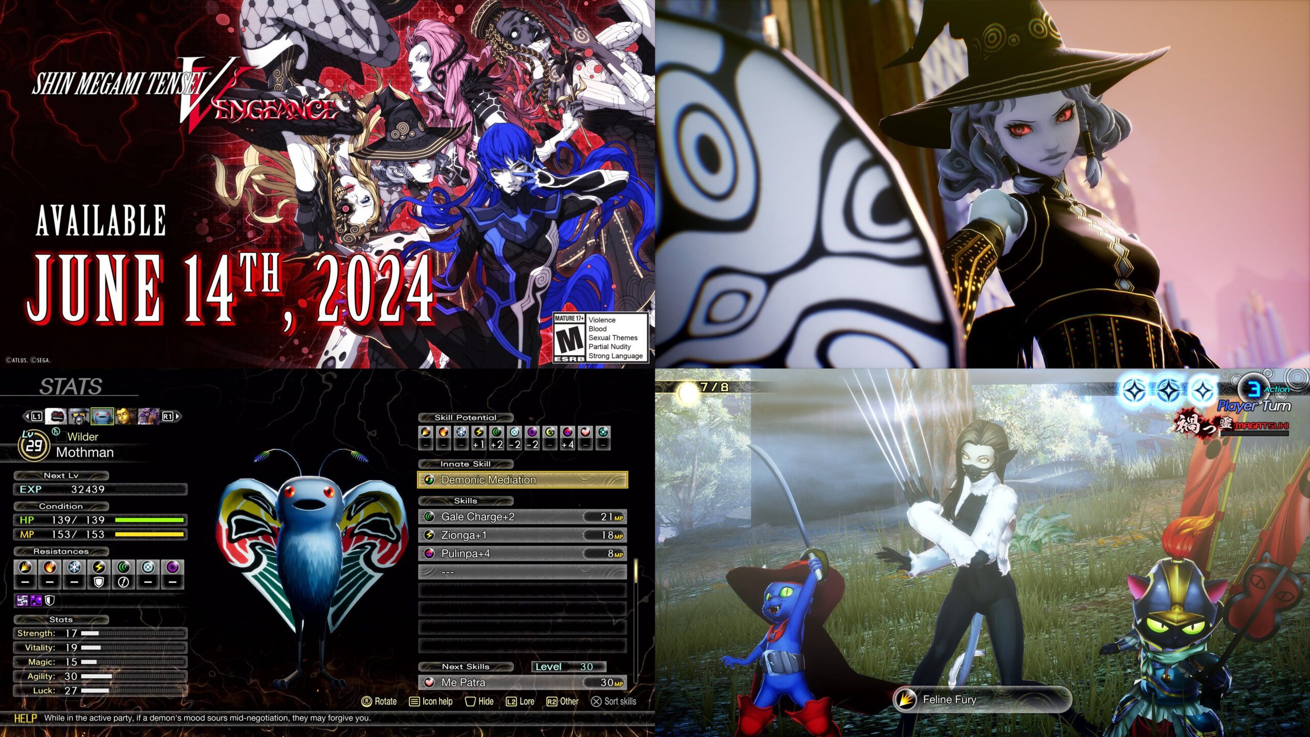 Habituellement, il arrive que les dates de sortie annoncées plusieurs mois à l’avance pour des jeux vidéo ou autres œuvres soient repoussées, et non pas le contraire. C’est donc avec surprise que nous apprenons aujourd’hui que la sortie de Shin Megami Tensei V : Vengeance, fixée à l’origine au 21 juin 2024, a été avancée au 14 juin prochain. Cette date apparaît désormais sur le site officiel, y compris sur la version française, confirmant qu’elle est bien mondiale. Le jeu est toujours prévu sur Nintendo Switch, PlayStation 4, PS5, Xbox One, Xbox Series et PC via Steam. Atlus et SEGA n’ont pas expliqué pourquoi une telle décision a été prise. Les vidéos diffusées sur la chaîne YouTube japonaise d’Atlus ont donc été supprimées puis remises en ligne avec la nouvelle date de sortie. De plus, des informations sur les personnages et le gameplay ont été publiées, avec de nouvelles images. Nous avons aussi recueilli plus de détails sur le développement du jeu. En plus d’avoir inclus toutes ces infos dans la suite de l’article, nous en avons profité pour faire le point au sujet de tout ce qu’il faut savoir sur Shin Megami Tensei V : Vengeance.