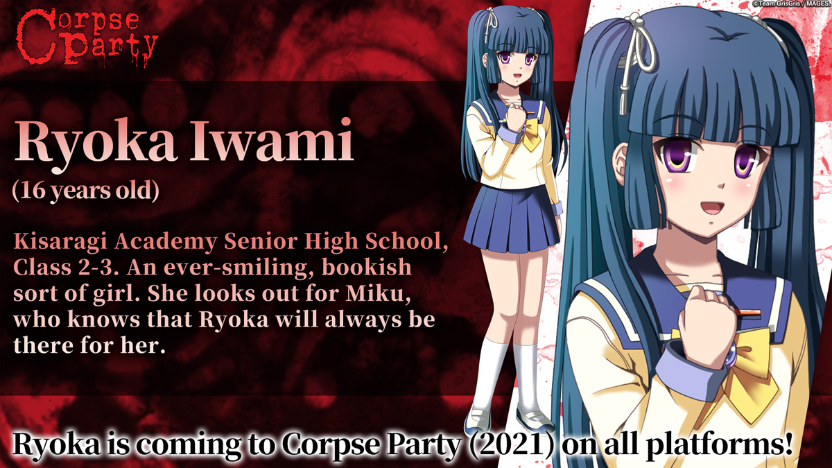 Le 18 février dernier, MAGES. a sorti un portage du jeu d’horreur et d’aventure / RPG Corpse Party Blood covered: …Repeated fear. (connu simplement sous le nom de Corpse Party en Occident) de Team GrisGris en version améliorée sur Nintendo Switch et PlayStation 4. Malgré le fait qu’il contenait la traduction anglaise existante depuis plusieurs années, le portage n’est pas sorti le même jour en dehors du Japon. Cela changera très bientôt, puisque Marvelous Europe et XSEED Games a annoncé que cette version améliorée de Corpse Party sera disponible en téléchargement dès le 20 octobre prochain sur Switch, PS4, Xbox One et PC via Steam, GOG et Humble Store au prix de 19,99 €.