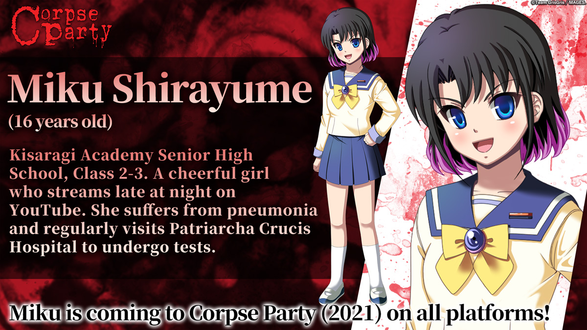La version 3DS de Corpse Party, sortie en 2015 au Japon puis l’année suivante en Occident, avait été remastérisée à partir du jeu d’origine sorti sur PlayStation Portable en 2010 au Japon puis en 2011 en Occident. Les sprites des personnages ont été redessinés et sont maintenant en haute résolution. Les musiques ont été arrangées, la 3D est toujours utilisée, et quatre nouveaux Extra Chapters exclusifs à cette version ont été ajoutés. Dans la version occidentale, le doublage japonais a été conservé et aucune modification n’a été faite (au niveau du scénario, des dialogues, des scènes, etc…) par rapport à la version d’origine. Pour en savoir plus sur le jeu et la série, n’hésitez pas à consulter nos anciens articles à cette adresse.