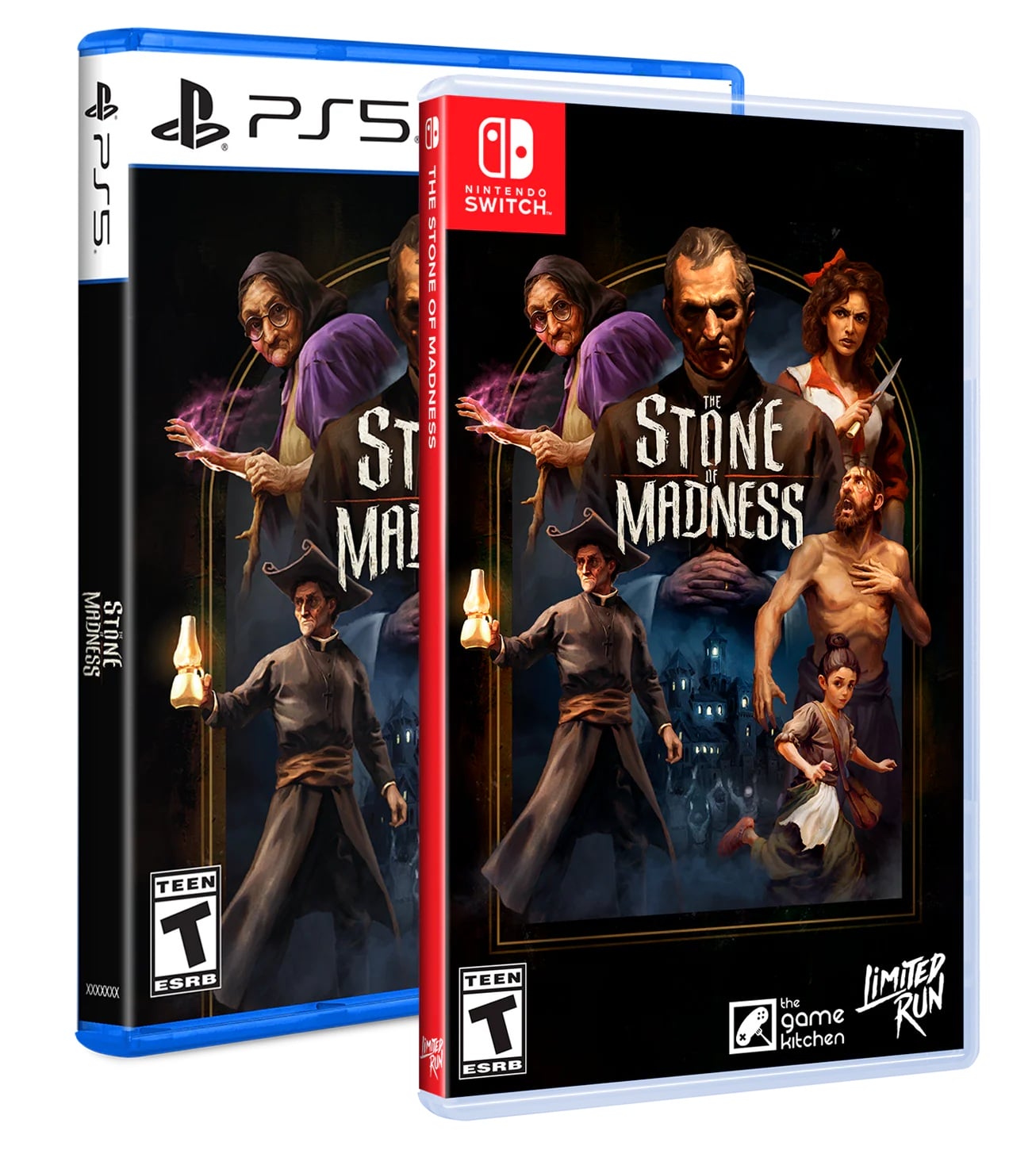 D’abord développé uniquement par Teku Studios (The Candle) avant que The Game Kitchen (Blasphemous, The Last Door) rejoigne le projet, The Stone of Madness est sorti le 28 janvier 2025 en téléchargement sur Nintendo Switch, PlayStation 5, Xbox Series et PC via Steam et Epic Games Store. Tripwire Interactive était en charge d’éditer le titre. Le jeu bénéficie désormais d’une édition physique américaine pour sa version Special Edition sur Switch et PS5, vendue en exclusivité sur la boutique de Limited Run Games. Elle peut être précommandée uniquement jusqu’au lundi 16 février 2026 à 05:59 (heure française) au prix de 49,99 $. L’expédition est prévue entre le 1er juillet et le 30 septembre 2026. Cette édition physique est accompagnée d’une housse pour la boîte et d’un livret. La version Special Edition, quant à elle, comprend un artbook numérique et la bande originale composée par Pascual de Gállego et David Martínez « Kid Peligro » au format numérique en plus de The Stone of Madness. Il est également possible d’acheter le contenu de cette version séparément sur l’eShop pour 4,99 €, tandis que le jeu de base coûte 29,99 €.