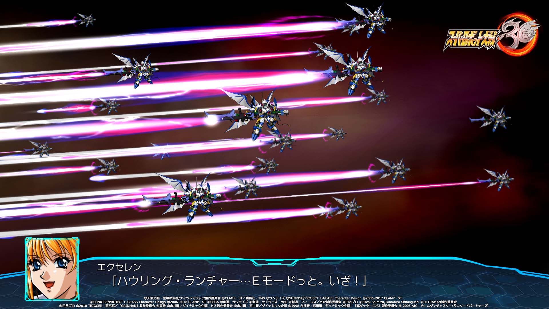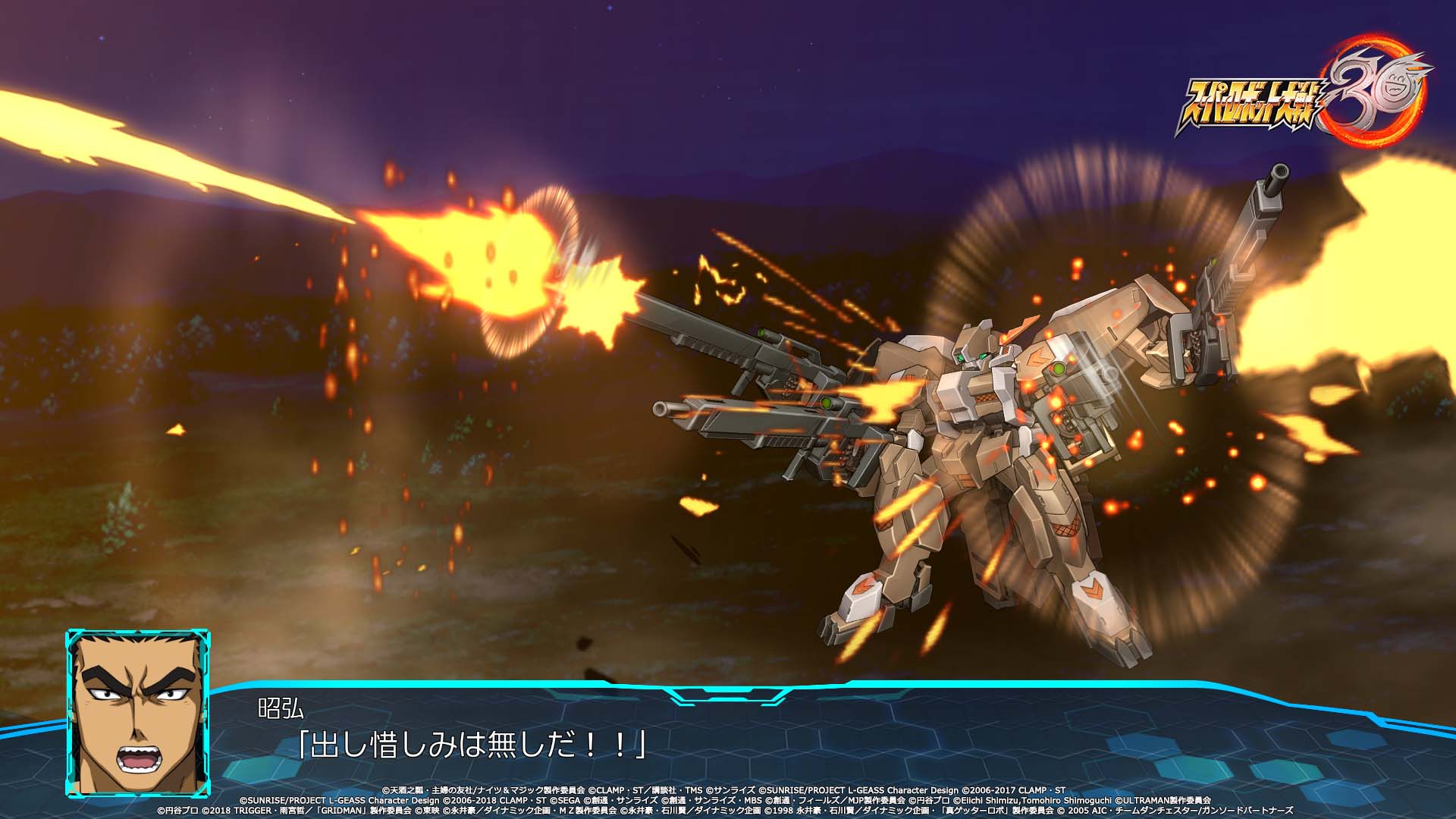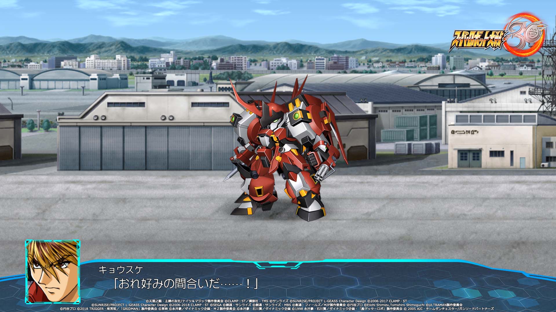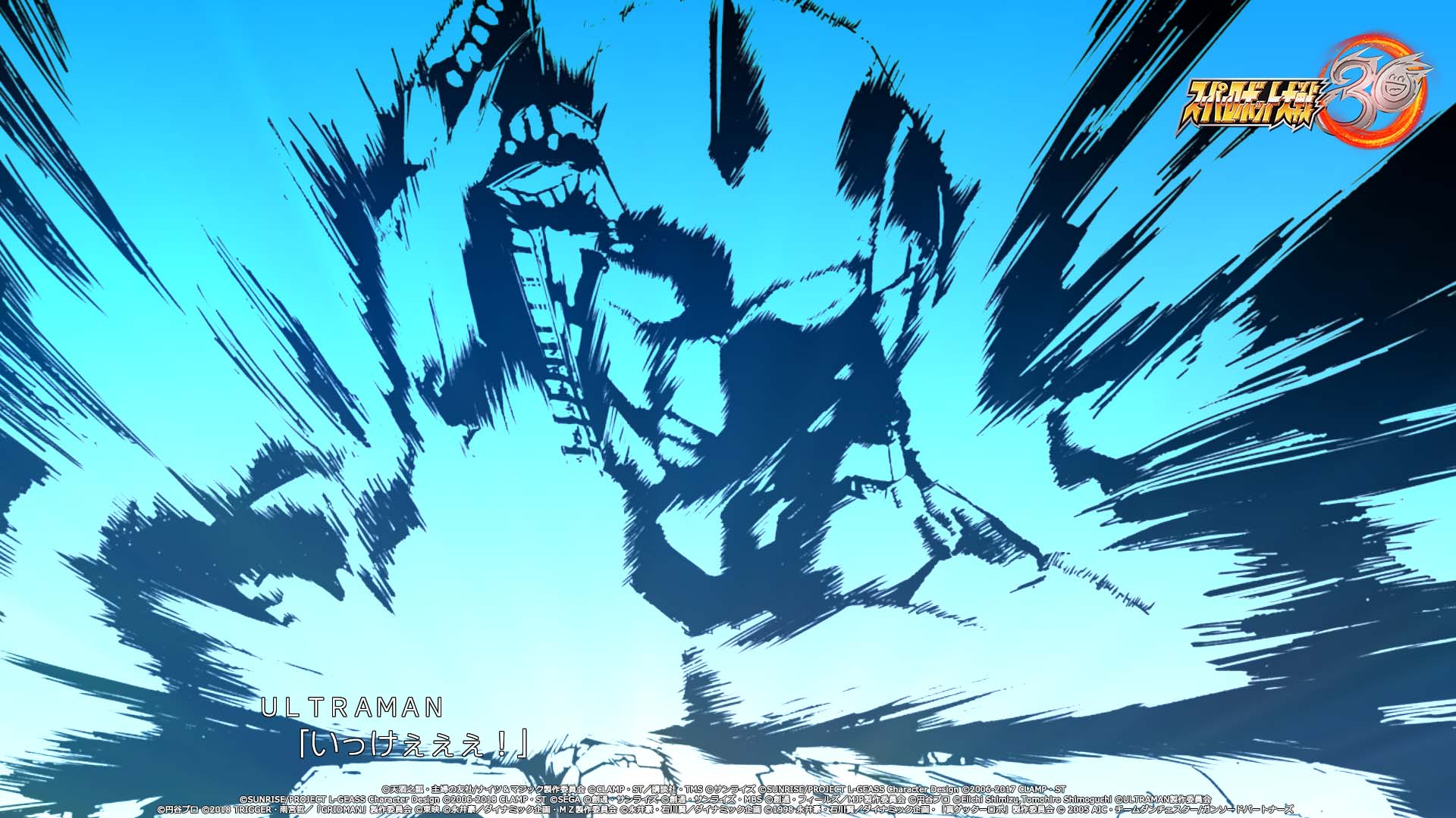 Les deux protagonistes auront également droit à leur propre chanson thème. Pour Edge Sainklaus, il s’agira de Sasurai no Yaiba ~Sleeping beast~ par Masaaki Endoh (JAM Project). Pour Az Sainklaus, ce sera Divine beast par M.A.R.Y. 4 TUNES. Et ce n’est pas tout, la chanson thème du jeu sera interprétée par le groupe légendaire JAM Project : Drei Kreuz ~Hagane no Survivor~. Elle a d’ailleurs été jouée au cours de l’émission Super Robot Wars Hagane no Chou Kanshasai 2021 ce 11 juillet. Le single avec la version longue de la chanson sortira le 22 décembre prochain au Japon. Autre artiste mis en avant dans l’émission et dans les vidéos promotionnelles : le très célèbre mangaka Go Nagai, qui s’est occupé du design du « 30 » du logo du jeu :