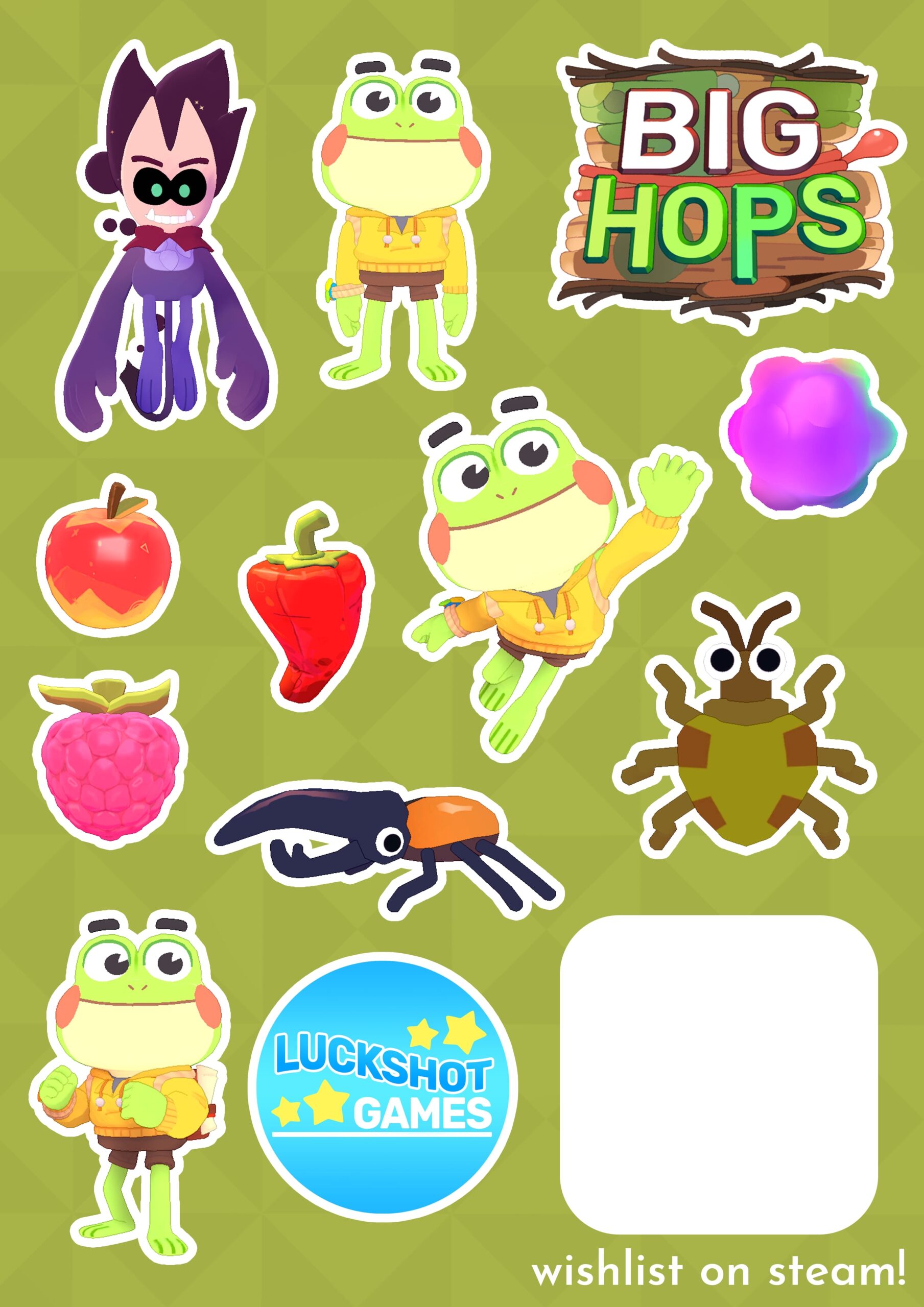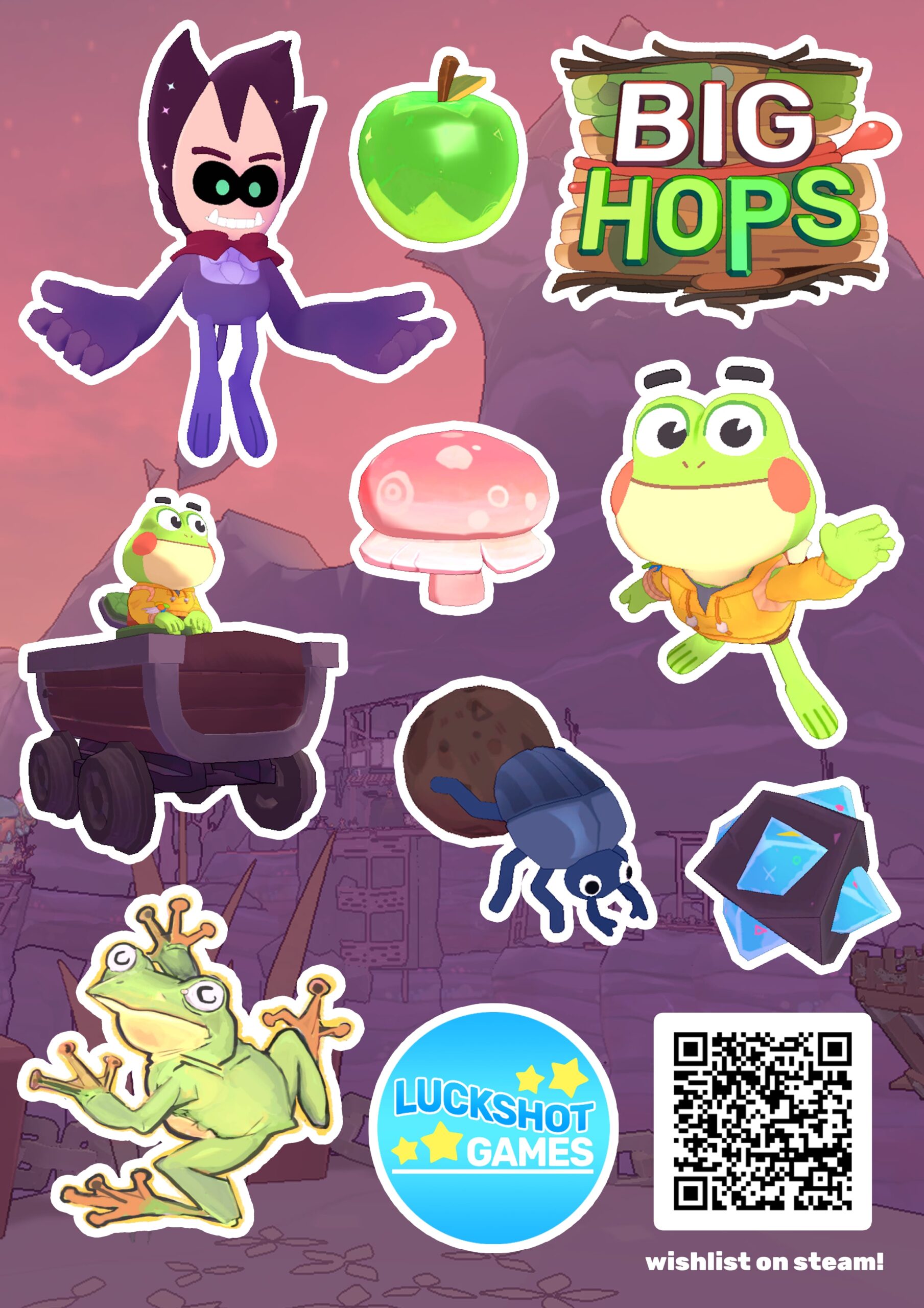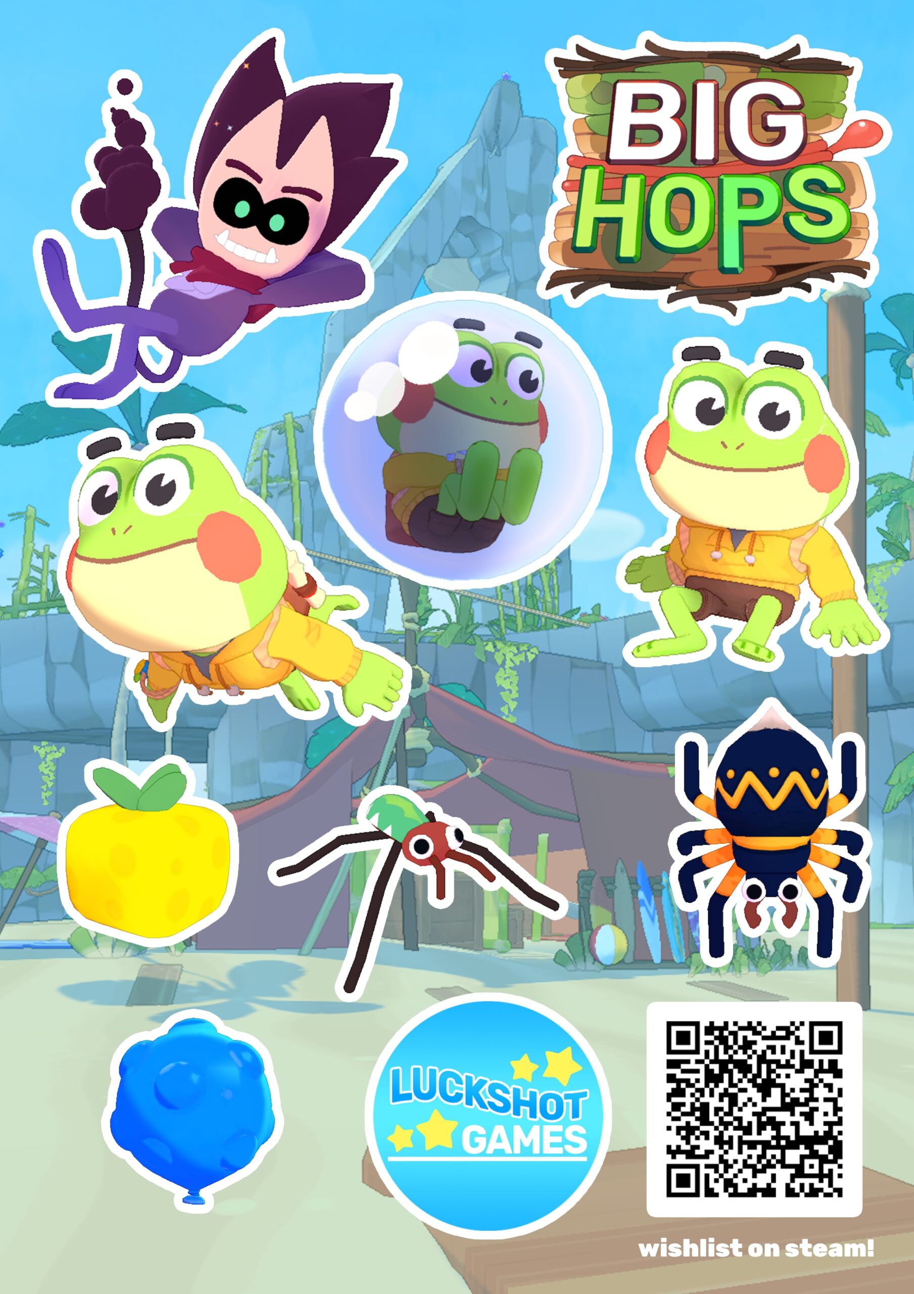 Avec Big Hops, Luckshot Games promet un jeu de plateformes 3D et d’action-aventure aux mouvements profonds et au gameplay original, où l’on peut cultiver des légumes pour construire des chemins. On incarne Hop, une jeune grenouille kidnappée par un esprit farceur du nom de Diss. Il a une mission mystérieuse et importante, et a besoin de l’aide du protagoniste. Cependant, ce dernier souhaite simplement retrouver sa famille. Après quelques recherches, un vieux raton laveur nerveux propose à Hop de lui construire un chemin pour rentrer au bercail, à condition de lui trouver des pièces de dirigeable.