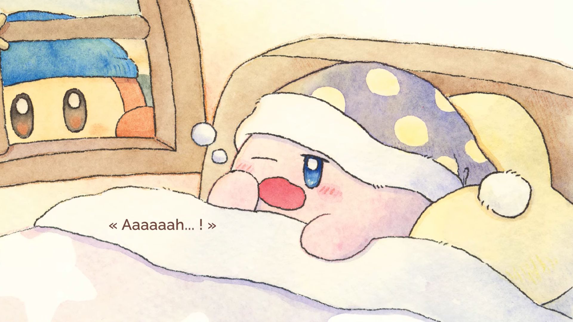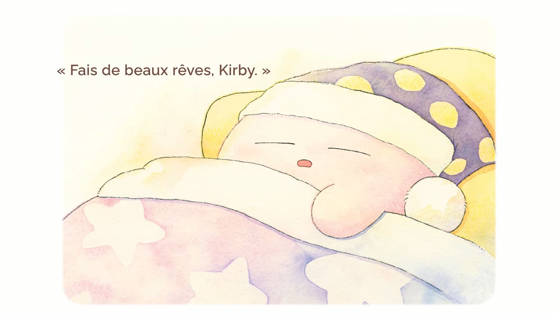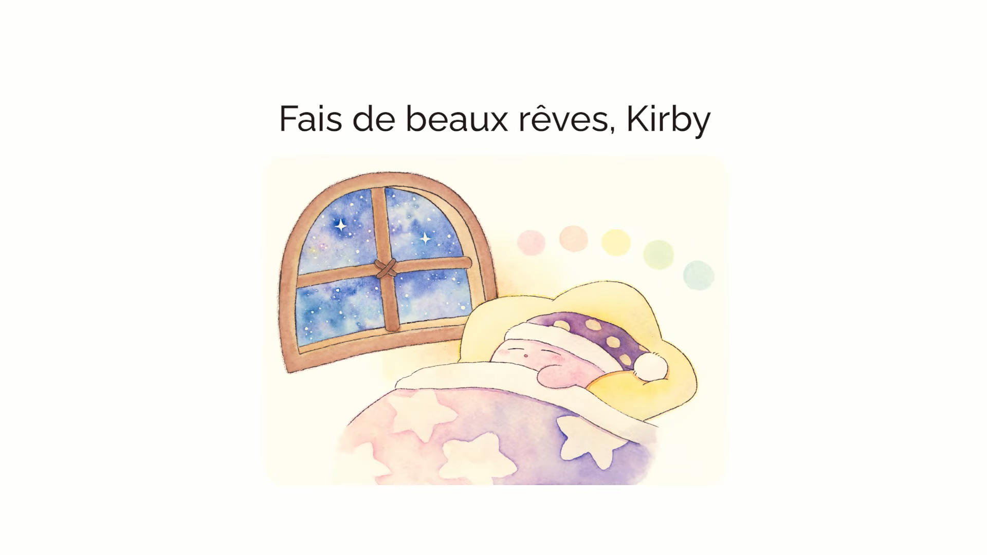 En 2019, l’éditeur Shogakukan a lancé Itsudemo Kirby, une série de livre d’images officiels Kirby à la fois pour les enfants et pour les adultes (à ne pas confondre avec les albums jeunesse et romans que nous présentions à cette adresse), écrits par l’autrice Asami Taniguchi et illustré par différents artistes. Ils comportent des histoires exclusives, tout en reprenant l’univers de Kirby et plusieurs de ses personnages. Ils ne sont jamais sortis du Japon, mais en guise de célébration pour le 30e anniversaire de Kirby, ils ont droit à une adaptation en vidéos narratives via Shogakukan et HAL Laboratory, traduites et narrées en plusieurs langues dont le français. Après le livre 4 le 9 avril, puis le livre 3 le 28 avril, c’est au tour du livre 1 d’avoir droit à son propre récit animé, intitulé Les Histoires de Kirby : Fais de beaux rêves, Kirby. Contrairement aux livres 4 et 3, ce livre 1 a été illustré par Rurutea, célèbre artiste qui a créé un personnage très populaire sur Twitter et LINE, Koupenchan, un bébé manchot empereur.