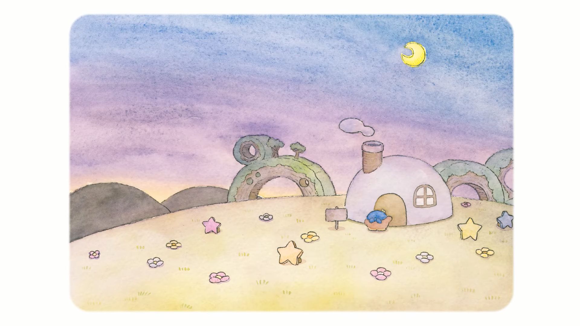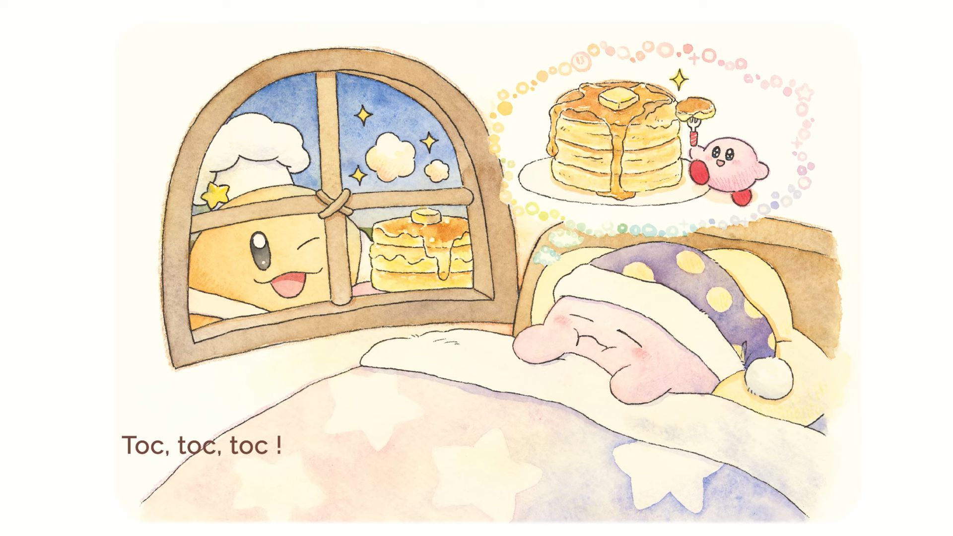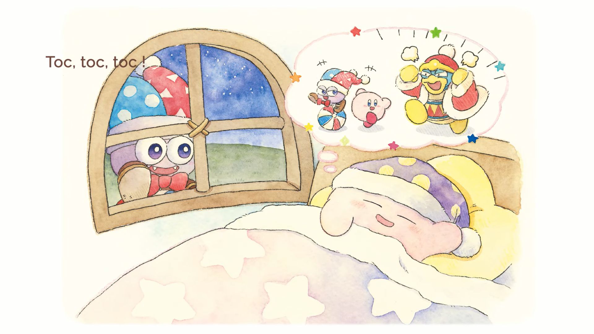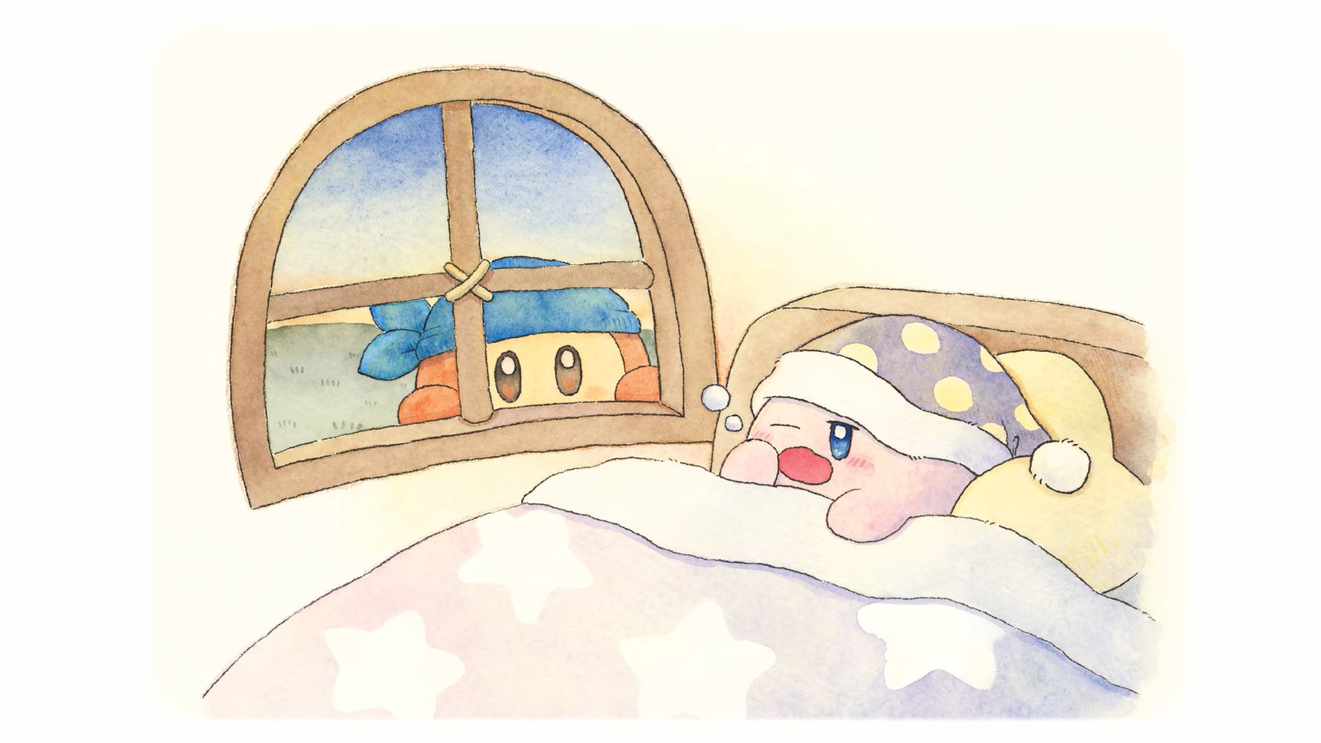 En 2019, l’éditeur Shogakukan a lancé Itsudemo Kirby, une série de livre d’images officiels Kirby à la fois pour les enfants et pour les adultes (à ne pas confondre avec les albums jeunesse et romans que nous présentions à cette adresse), écrits par l’autrice Asami Taniguchi et illustré par différents artistes. Ils comportent des histoires exclusives, tout en reprenant l’univers de Kirby et plusieurs de ses personnages. Ils ne sont jamais sortis du Japon, mais en guise de célébration pour le 30e anniversaire de Kirby, ils ont droit à une adaptation en vidéos narratives via Shogakukan et HAL Laboratory, traduites et narrées en plusieurs langues dont le français. Après le livre 4 le 9 avril, puis le livre 3 le 28 avril, c’est au tour du livre 1 d’avoir droit à son propre récit animé, intitulé Les Histoires de Kirby : Fais de beaux rêves, Kirby. Contrairement aux livres 4 et 3, ce livre 1 a été illustré par Rurutea, célèbre artiste qui a créé un personnage très populaire sur Twitter et LINE, Koupenchan, un bébé manchot empereur.