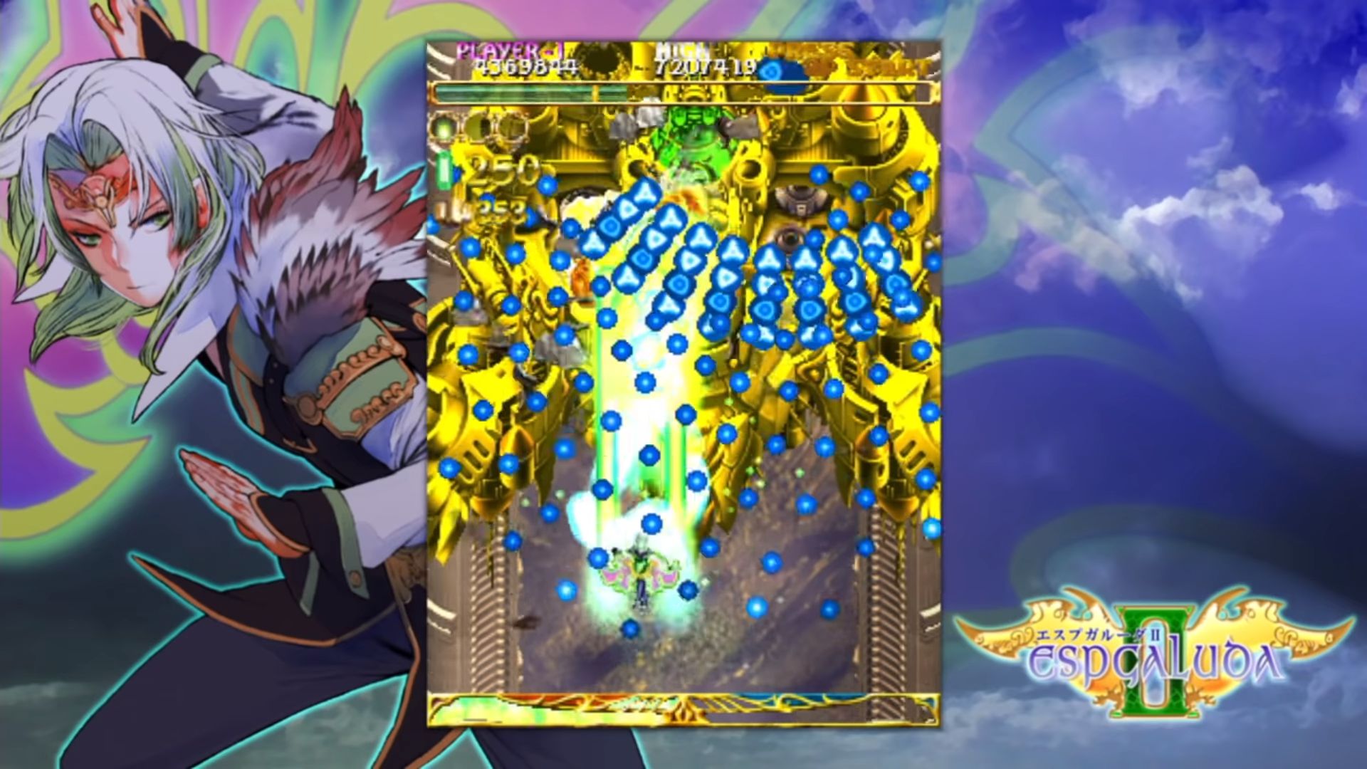 L’arrivée d’Espgaluda II sur Switch est également tout à fait justifiée. En plus du fait qu’il reste l’un des meilleurs jeux de tir de Cave, il s’agit du deuxième spin-off d’ESP Ra.De., qui est donc déjà sorti sur Switch en version améliorée. Pour le moment, nous ne savons cependant pas si le premier Espgaluda sortira également sur Switch. Pour revenir à Espgaluda II, il faut savoir que le jeu est tout d’abord sorti sur arcade en 2005. Il a connu ensuite des portages sur mobile, Xbox 360, Android et iOS. Classique du bullet hell, Espgaluda II profite de musiques composées par Manabu Namiki, Mitsuhiro Kaneda et Ryu Umemoto, et d’un character design réalisé par l’artiste Masaki Hirooka.